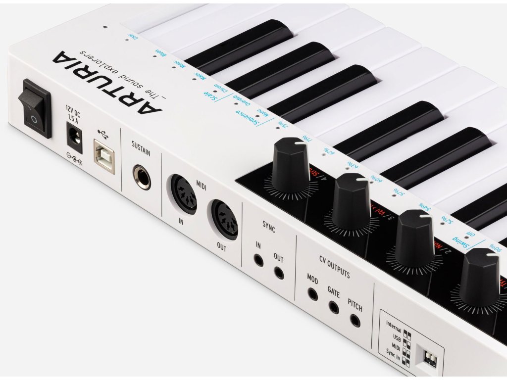 To, co czyni Keystep wyjątkowym kontrolerem, to jego rozszerzona łączność. Oprócz standardowego USB znajdziesz również wejście i wyjście dla MIDI, gniazda do synchronizacji zegara, gniazda DIN sync, wyjścia CV/Gate i oddzielne wyjście CV, któremu można przypisać kontroler Mod, dynamikę klawiatury lub aftertouch. W praktyce oznacza to, że za pomocą Keystepu możesz sterować nie tylko oprogramowaniem, ale także całą kolekcją analogowych syntezatorów i modułów, synchronizować urządzenia MIDI etc. Port USB podczas podłączenia do komputera ładuje kontroler, jeśli chcesz go używać oddzielnie, możesz podłączyć zasilacz.