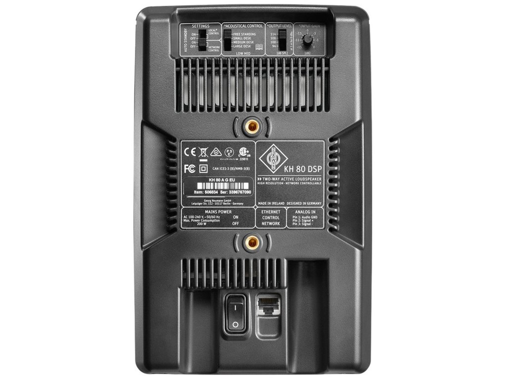 KH 80 DSP to aktywny, dwudrożny monitor studyjny bi-amp, wyposażony w jednostkę DSP z możliwością zdalnego dostępu do ustawień parametrów dźwięku. Podobnie jak inne modele z rodziny KH, KH 80 DSP jest wyposażony w precyzyjny falowód (Waveguide MMD ™), analogowe wejście XLR, regulację poziomu wejściowego (GAIN), regulowany poziom wyjściowy (SPL) od 94 do 114dB, fizyczne przełączniki do kompensacji umiejscowienia monitora w przestrzeni oraz pełną gamę akcesoriów montażowych. Ten kompaktowy monitor może być używany do szerokiej gamy zastosowań - jako monitor bliskiego pola lub jako przedni / tylny głośnik w systemach wielokanałowych. Nadaje się do studiów muzycznych, stacji telewizyjnych i radiowych, wozów transmisyjnych i studiów postprodukcyjnych, studiów masteringowych, a także do krytycznego odsłuchu w środowisku domowym. Instrukcja instalacji monitorów studyjnych