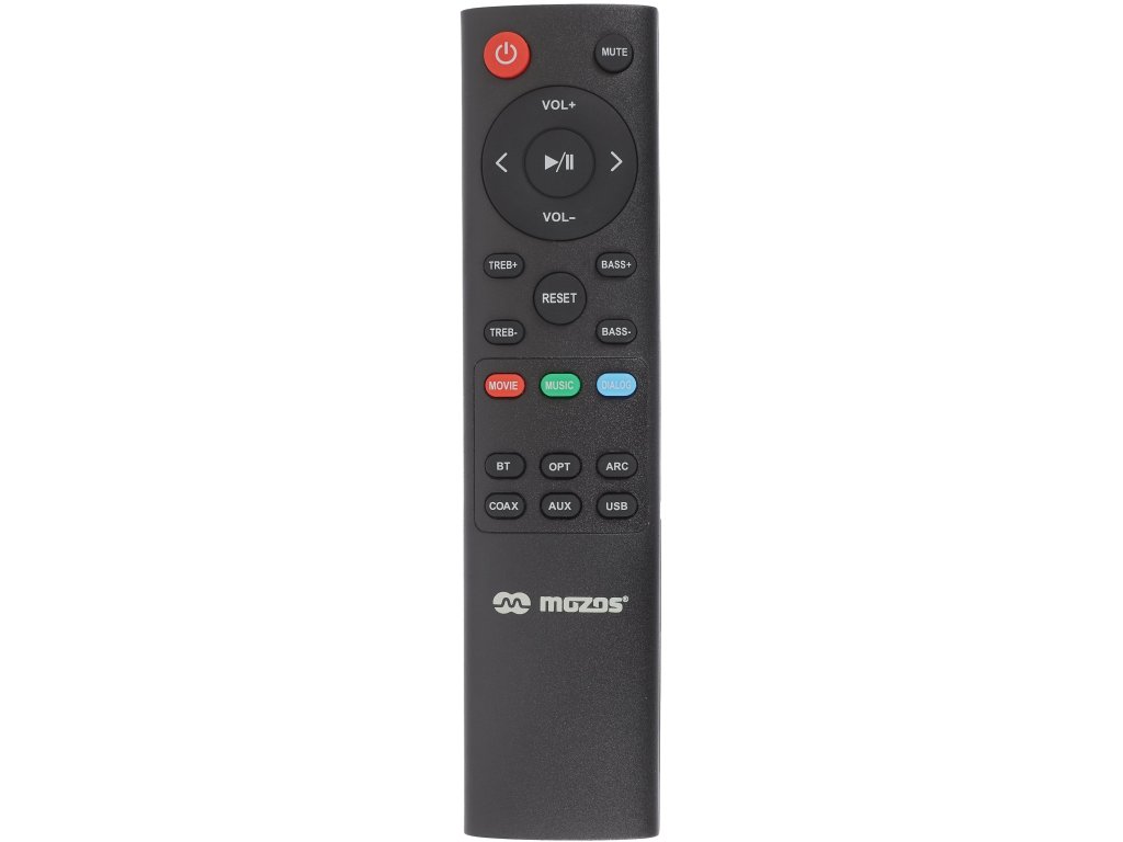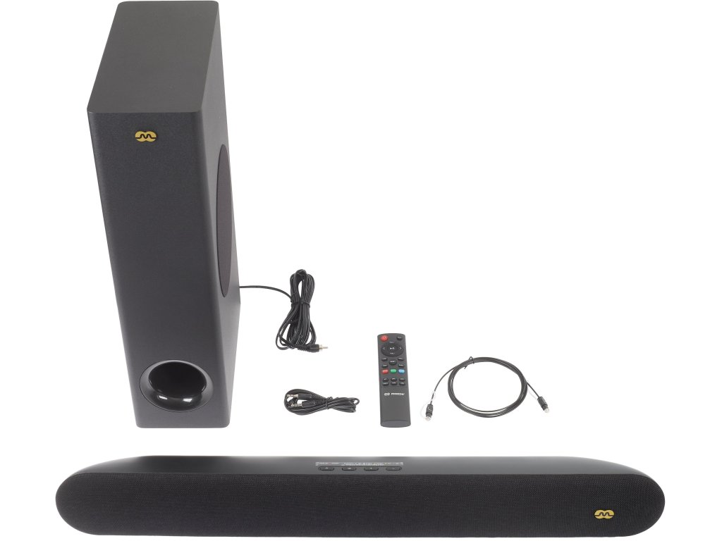 Przystępny cenowo, wydajny domowy system nagłośnieniowy o szerokiej kompatybilności (z TV, PC, laptopami, telefonami itp.). Oferuje Soundbar Bluetooth 5.0 uzupełniony o zewnętrzny subwoofer z membraną 6,5 cala, technologię Bluetooth o zasięgu do 10 metrów, port USB, wejście Aux In, optyczne wejście do podłączenia TV, wejście koaksjalne, HDMI ARC oraz pilot zdalnego sterowania z trzema trybami EQ. W zestawie, oprócz zewnętrznego subwoofera, znajduje się również pilot zdalnego sterowania, zasilacz oraz uchwyt do montażu na ścianie wraz z potrzebnymi śrubami.