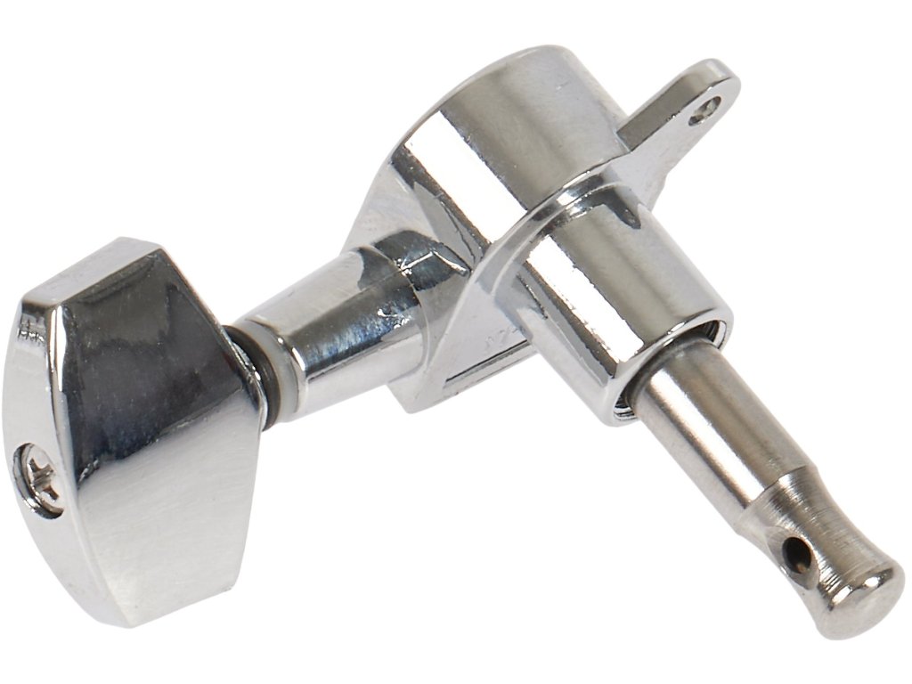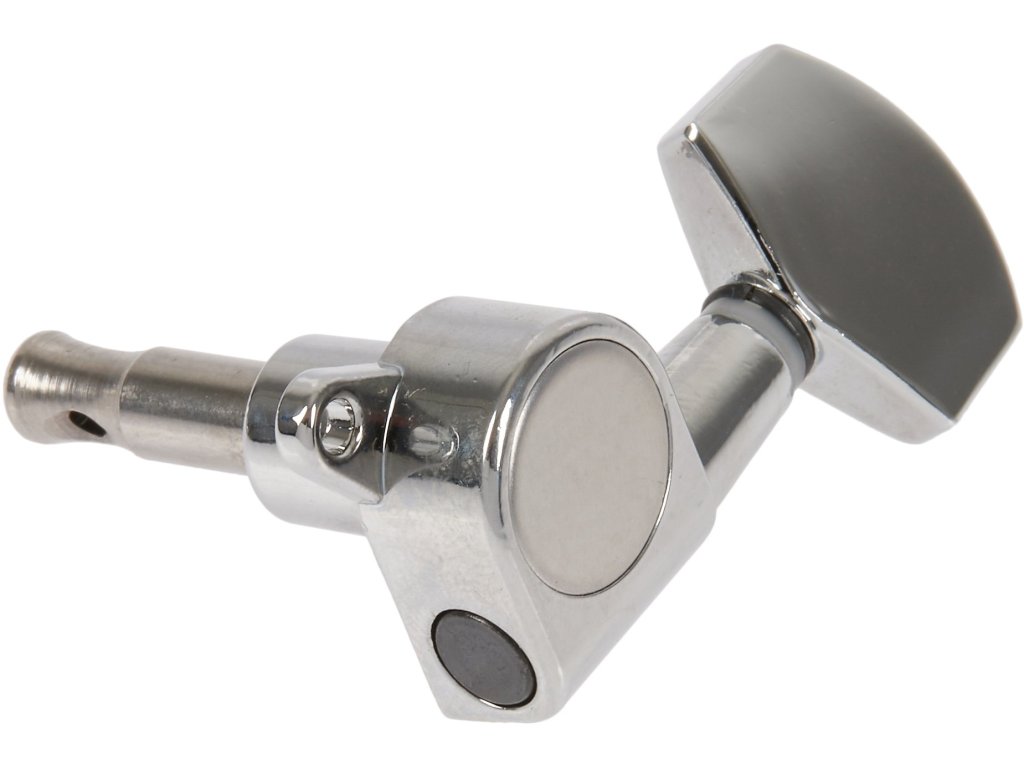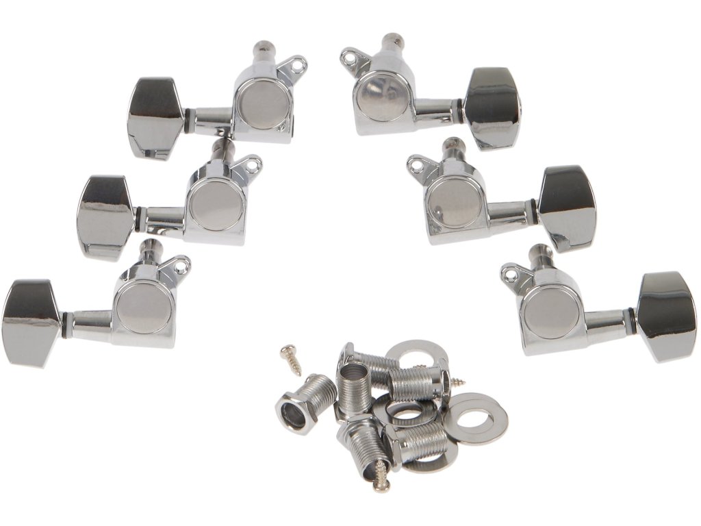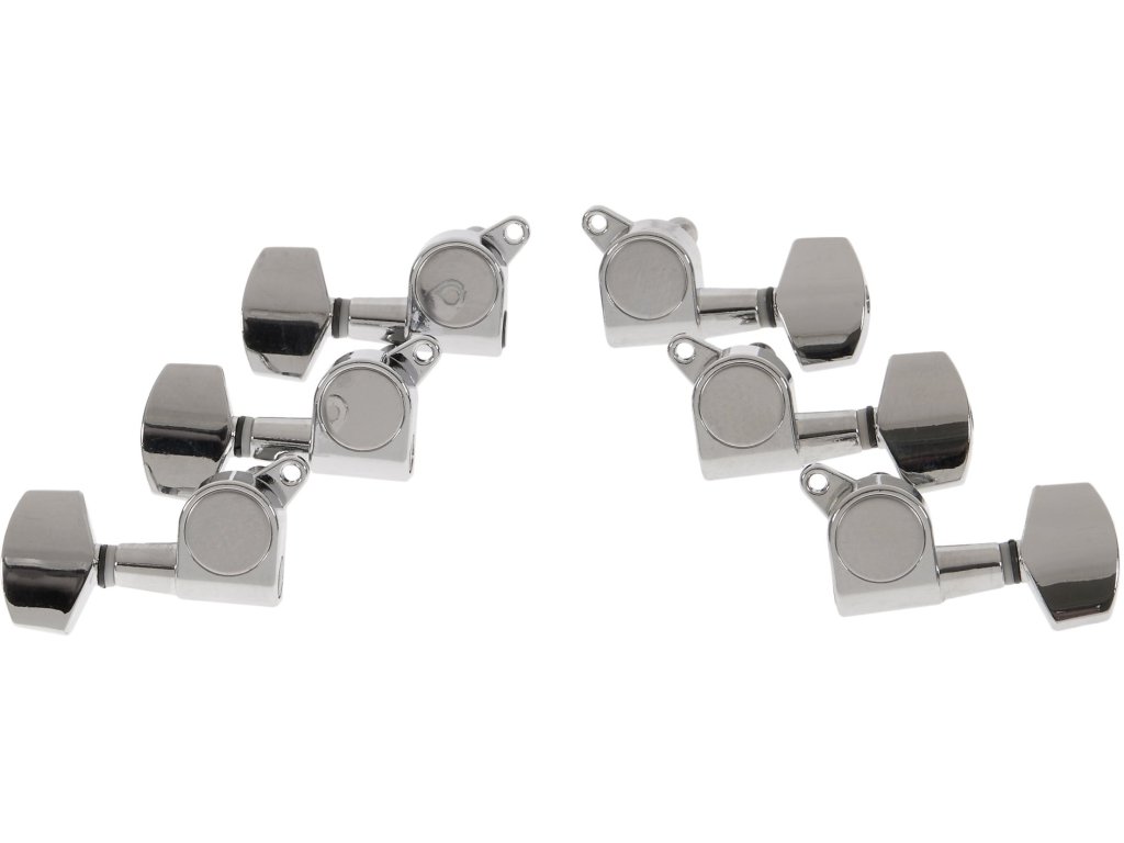 Klucze do strojenia gitary elektrycznej. Wykonane są z metalu z chromowanym wykończeniem, kołki również są metalowe. Pasują do instrumentów z układem kluczy w stylu 3+3.