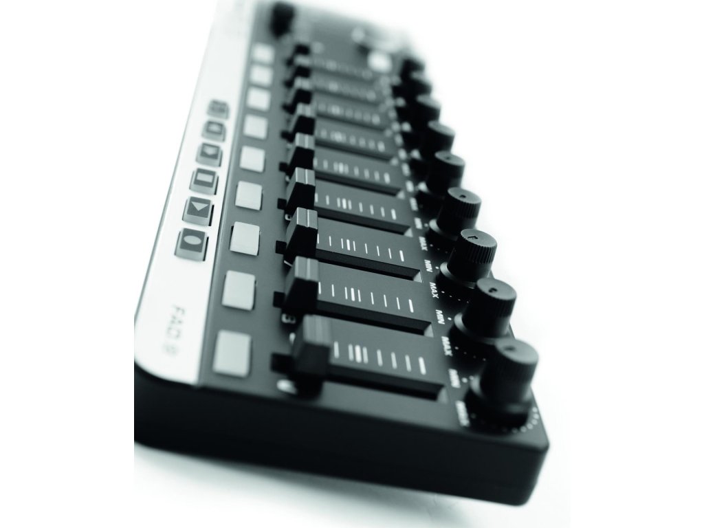 Klawiatury USB MIDI do kreatywnej produkcji muzycznej na PC i Mac. Superprzenośny format, który mieści się w torbie podręcznej lub plecaku. Współpracuje praktycznie z każdym oprogramowaniem audio. 9 swobodnie programowalnych kontrolerów obrotowych, 9 swobodnie przypisywalnych faderów, 13 swobodnie programowalnych przycisków, 6 przycisków funkcyjnych: Play, Stop, REW, FF, LOOP, REC, 4 programowalne banki pamięci, 1 master fader, kabel USB i edytor oprogramowania dla PC i MAC. Plug & play - podłączenie USB do PC i Mac, nie wymaga instalacji sterowników, magistrala USB - nie wymaga dodatkowych kabli zasilających, Windows XP, Vista, 7 i Mac OS X 10.3.9 i nowsze. Szer. x Gł. x Wys.: 345 x 97 x 39 mm 430 g.