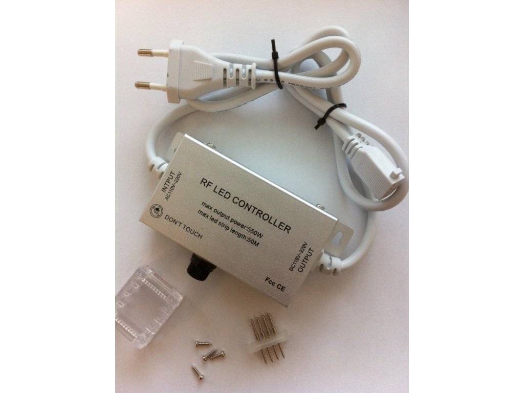Sterownik przeznaczony jest do taśm RGB LED, AC220V. Pilot zdalnego sterowania RF zawierający bardziej zaawansowane funkcje sterowania. Ten sterownik może być również używany do sterowania większą ilością świateł ze źródłem LED lub światłem, które ma zasilacz impulsowy. Sterowanie odbywa się za pomocą pilota zdalnego sterowania RF. Sterownik RF - nie jest wymagana bezpośrednia widoczność, sterownik można schować na szafę lub w podwieszanym suficie.
