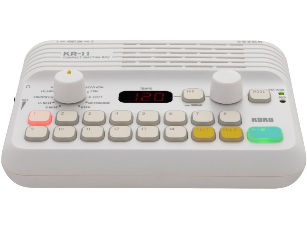Nowy KR-11 to kompaktowy, ale bogaty w funkcje automat perkusyjny, który jest łatwy w transporcie i dodaje różnorodności Twojej muzyce. KR-11 nawiązuje do dziedzictwa legendarnego KORG Doncamatic z 1963 roku i przenosi go do współczesności.