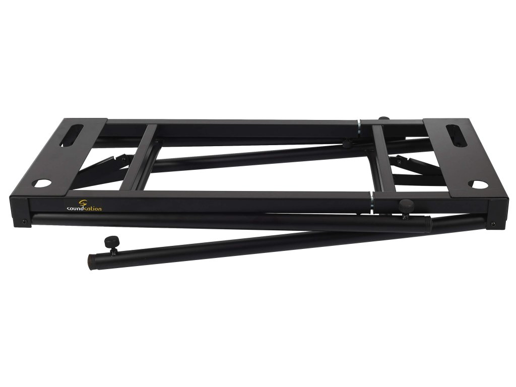 Solidny statyw klawiszowy odpowiedni do ciężkich pianin scenicznych. Statyw wykonany jest z wytrzymałej stali i posiada cztery teleskopowe nogi do łatwej regulacji wysokości. Statyw można dopasować do wymiarów instrumentu, a wygodny transport zapewni składana konstrukcja.