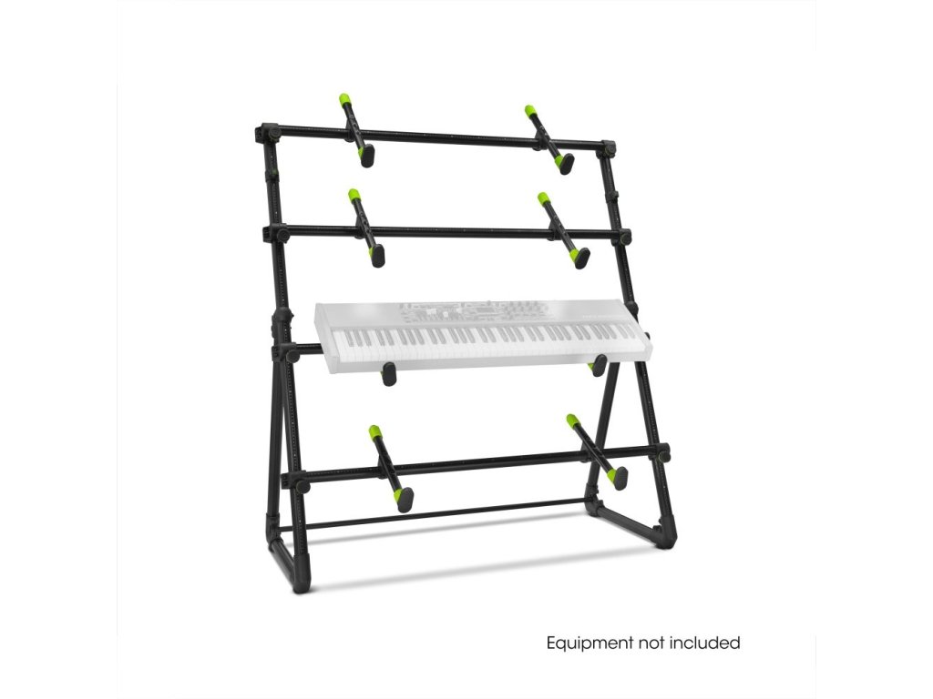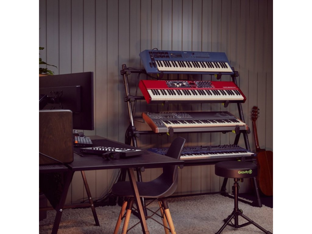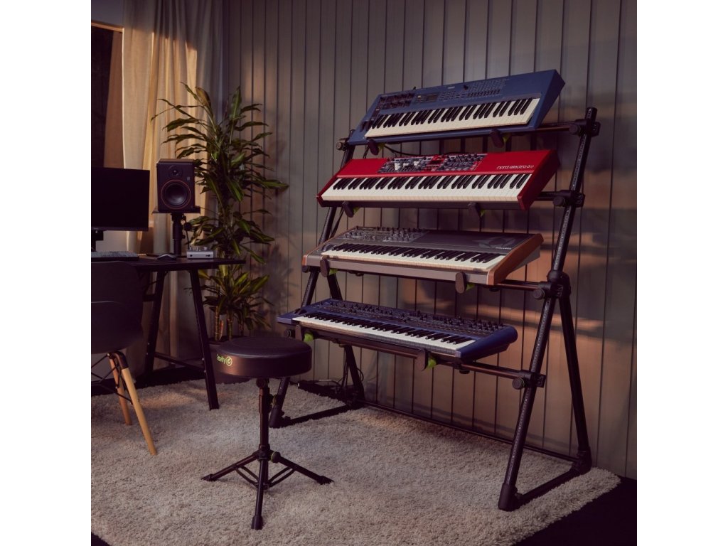 Jako muzyk wiesz, jak ważne jest posiadanie niezawodnego i uniwersalnego statywu na instrumenty klawiszowe, który pomieści cały Twój sprzęt. I właśnie do tego służy statyw Multi Keyboard Stand. Dzięki czterem poziomom na instrumenty klawiszowe, syntezatory, stacje robocze, grooveboxy, efekty, miksery itp. będziesz mieć wystarczająco dużo miejsca do przechowywania całego swojego sprzętu. To jednak sprawia, że statyw Multi Keyboardstand naprawdę się wyróżnia, to jego w pełni regulowane podpory. Nie ma znaczenia, czy chodzi o odległość między podporami, czy o kąt nachylenia. Wszystko jest dowolnie regulowane, dzięki czemu możesz dostosować statyw do swoich konkretnych potrzeb.