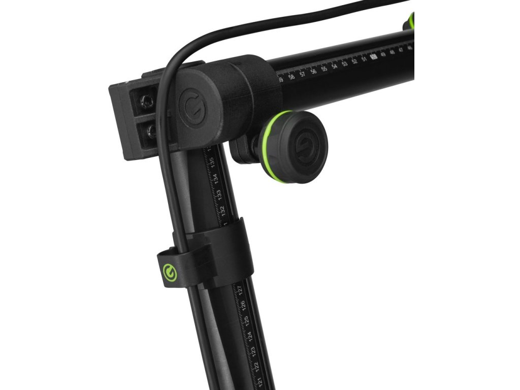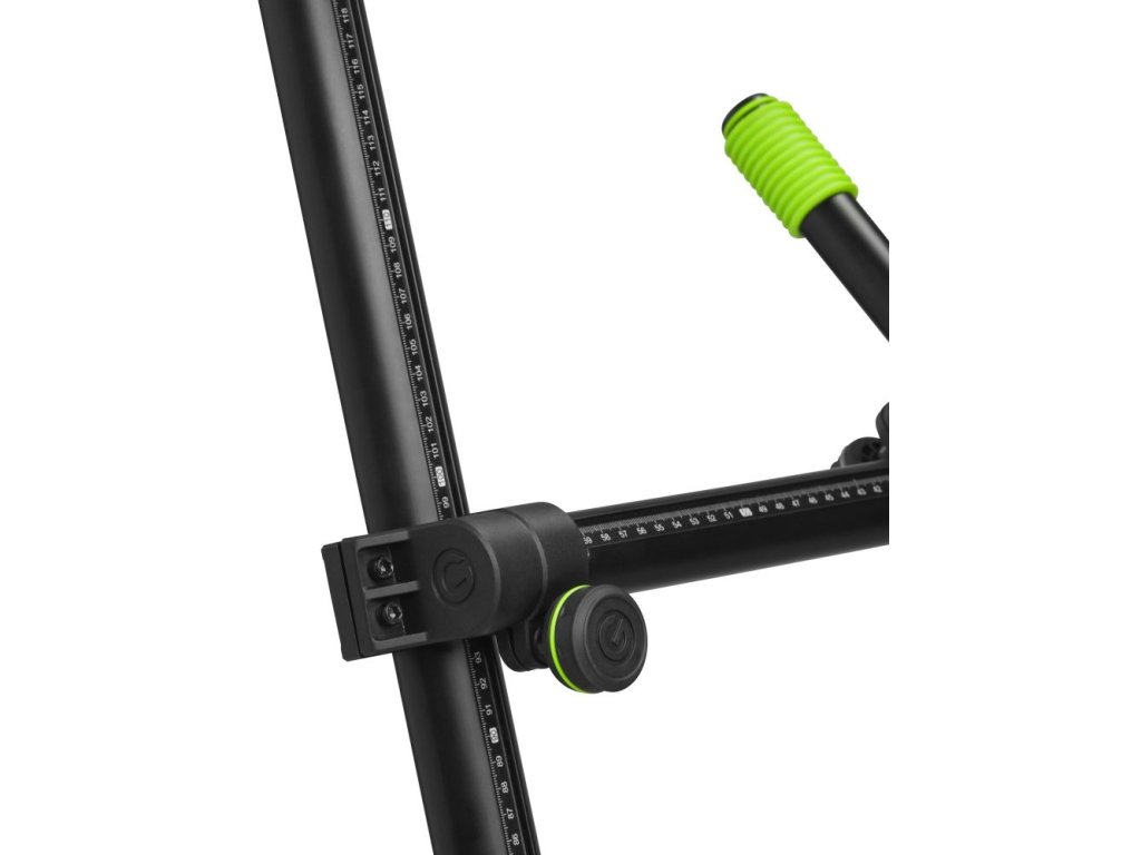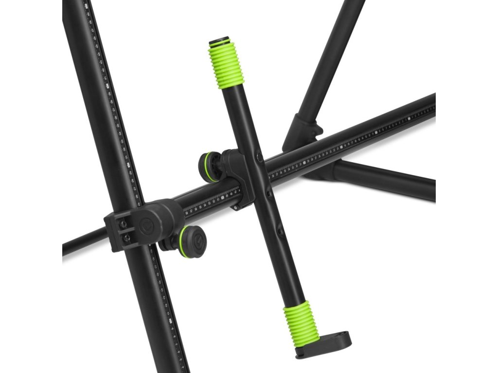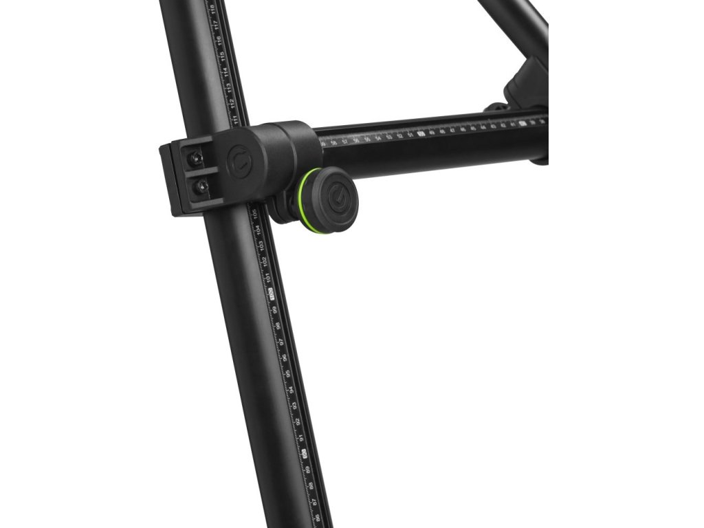 Statyw Multi Keyboardstand jest nie tylko niezwykle wygodny, ale także skonstruowany tak, aby wytrzymać. Jest wyposażony w dodatkowy zestaw wyższych przednich ograniczników dla większych klawiszy, które utrzymują je w bezpieczeństwie i stabilności, a także jest wykonany z lekkiego i wytrzymałego aluminium, które zapewnia trwałość. Dodatkowo jest dostarczany z prowadnicą kabli, która utrzymuje porządek w kablach, oraz z zestawem samoprzylepnych taśm pomiarowych, które zapewniają precyzyjne umieszczenie instrumentów.