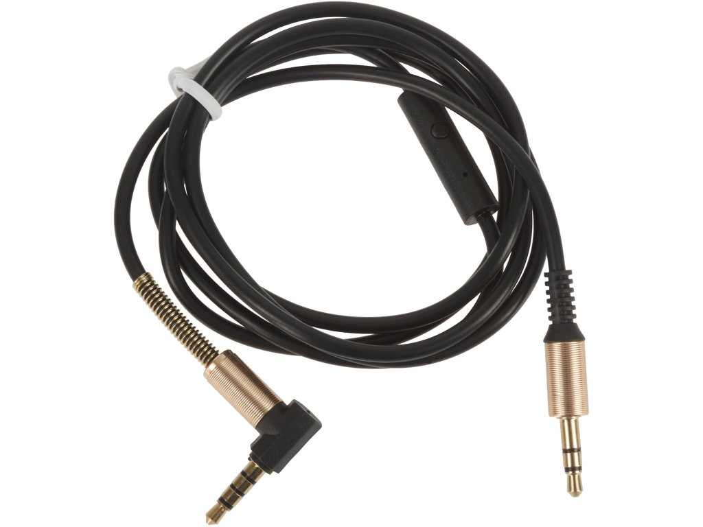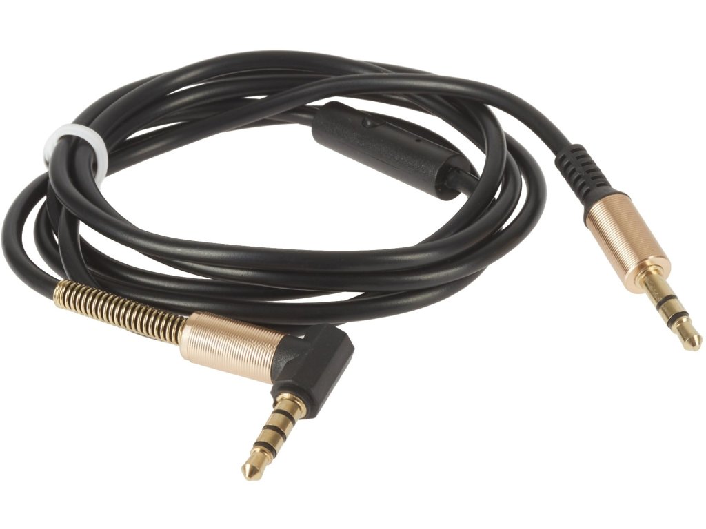 Kabel połączeniowy między odtwarzaczem muzycznym, smartfonem a słuchawkami. Kabel jest wykonany z wytrzymałego materiału PVC i posiada sprężyny ochronne z pozłacanymi złączami dla jak najlepszego przesyłu sygnału bez jakichkolwiek zniekształceń. Kabel oferuje również zintegrowany mikrofon z kontrolerem do odbierania połączeń w trybie głośnomówiącym.