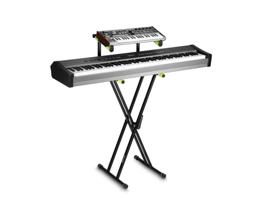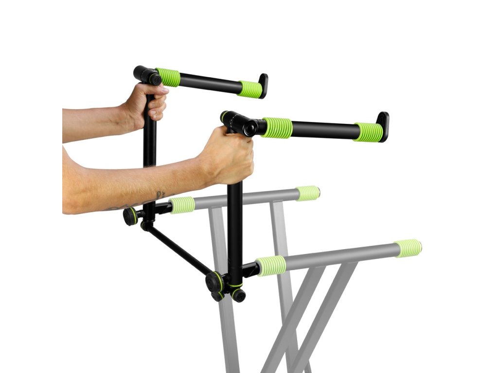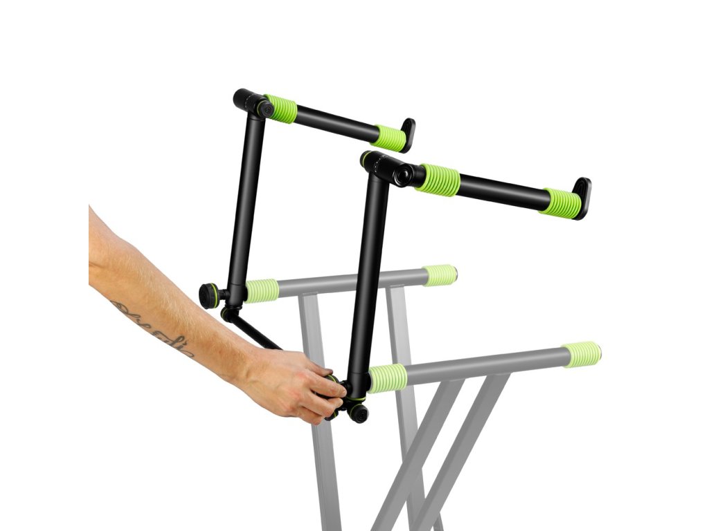 Gravity KSX 2 T to przystawka do statywów klawiszowych Gravity KSX. Można ją zainstalować bez użycia narzędzi, a kąt nachylenia klawiszy można precyzyjnie regulować w małych krokach. Przystawka jest kompatybilna ze statywami, których średnica rur nie przekracza 20 mm.