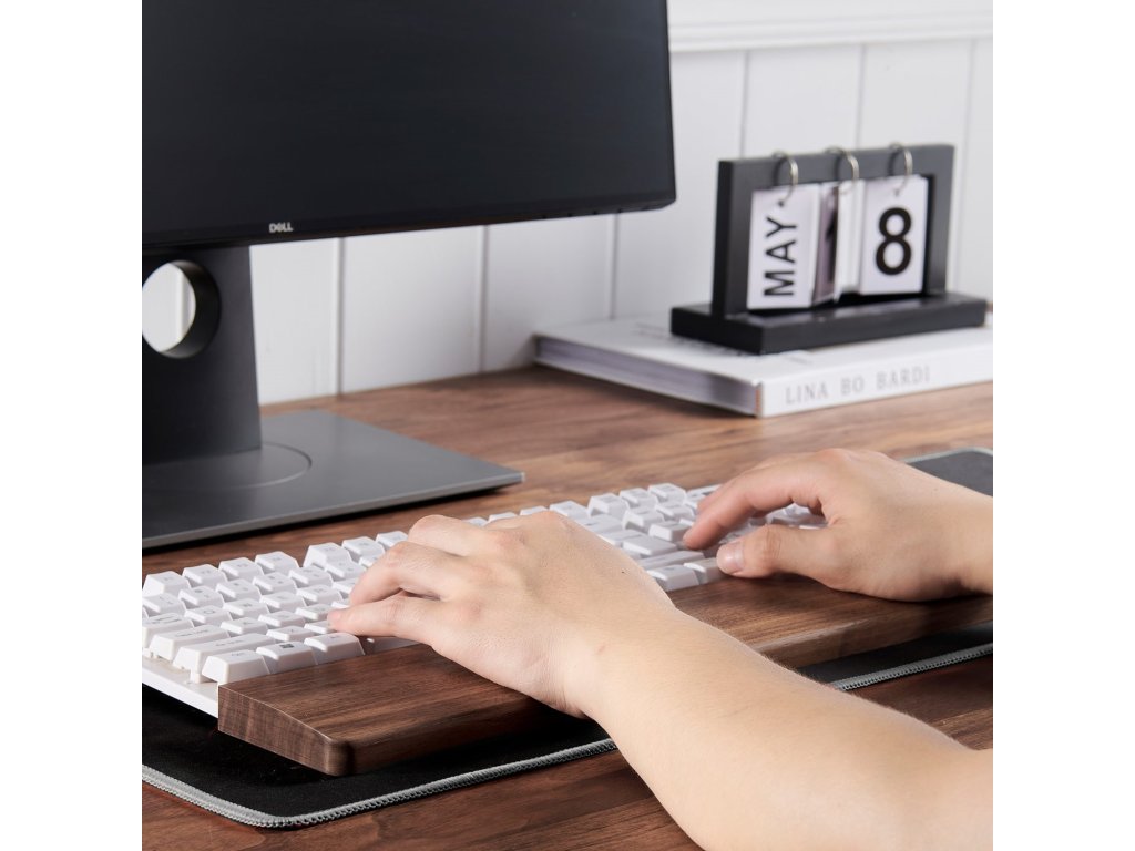 Drewniana podpórka / podkładka pod nadgarstki do klawiatury komputerowej pełnowymiarowej (104 klawisze).