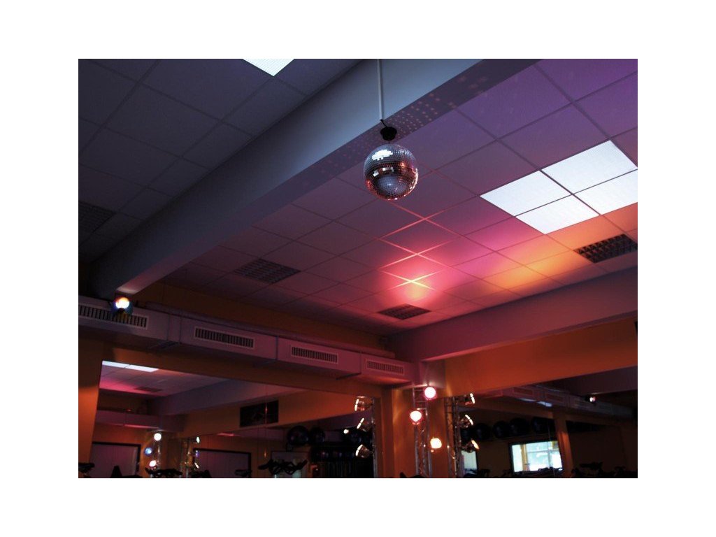 Zestawy zawierają kulę lustrzaną o różnych średnicach, motorek 1,5 obrotu/min. łańcuch do mocowania kuli. Idealna dekoracja do klubów nocnych, barów i restauracji.