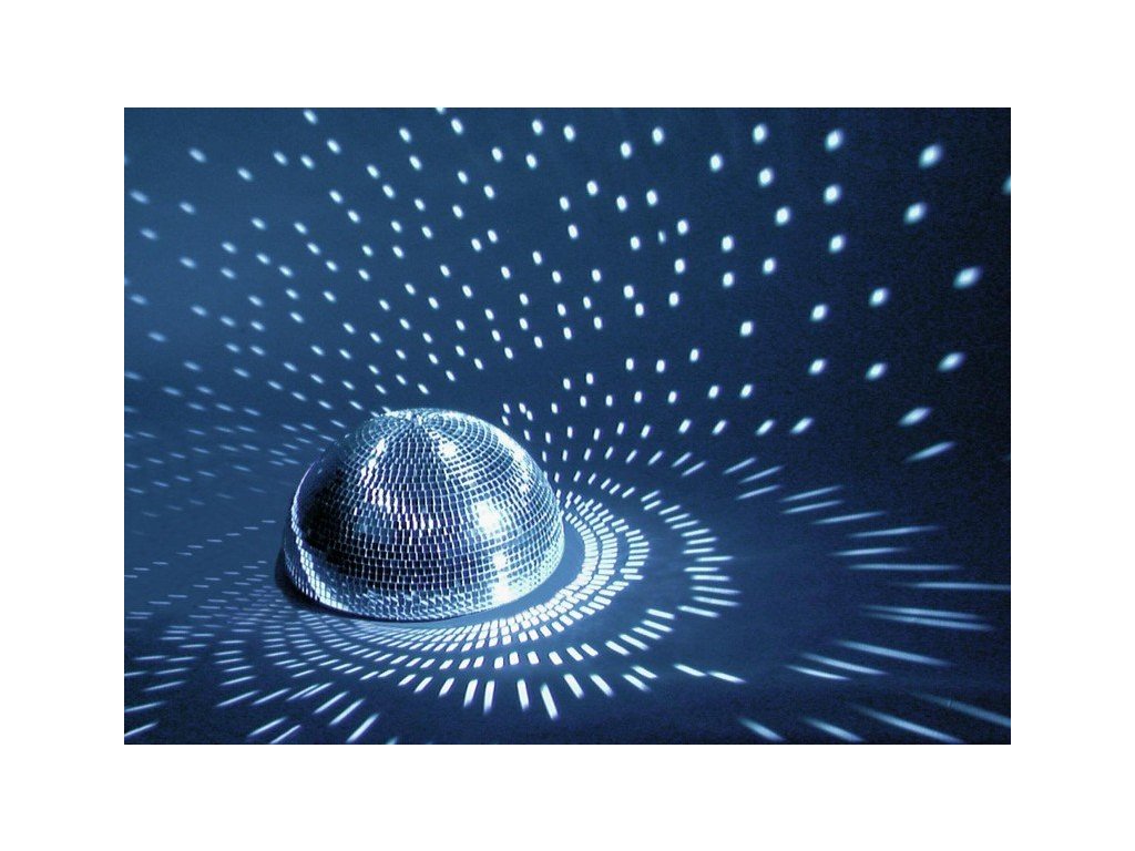 Półkula lustrzana klejona z fasetami 10 x 10 mm. Wbudowany mocny silnik. Nadaje się do montażu na suficie lub ścianie.
