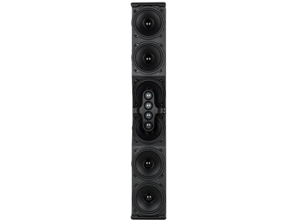L2406-T to kompaktowy, trzypasmowy zestaw głośnikowy kolumnowy o pełnym zakresie i wysokiej zrozumiałości, z pionowo sterowaną kierunkowością, przeznaczony do średnich i dużych instalacji. Wyposażony jest w sześć 5" głośników niskotonowych i cztery 1" kopułkowe głośniki wysokotonowe umieszczone przed dwoma centralnymi głośnikami niskotonowymi. Ta konkretna konstrukcja umożliwia ciągłe rozpraszanie dźwięku w bardzo kompaktowej obudowie. Dwa centralne głośniki niskotonowe są sterowane inaczej niż pozostałe cztery, ponieważ przed nimi umieszczone są głośniki wysokotonowe, aby poprawić kierunkowość zapewniającą prawdziwą kardioidalną pracę kolumny.Szeroki kąt pokrycia w poziomie i kontrolowane rozpraszanie w pionie umożliwiają prawidłową reprodukcję dźwięku obsługującą szeroki obszar i pomagają w ograniczaniu sprzężeń zwrotnych i pogłosu. Aby wzmocnić częstotliwości głosu i poprawić zrozumiałość mowy, można aktywować filtr mowy. Zwrotnica została zaprojektowana tak, aby zapobiegać tworzeniu się listków bocznych. Dostarczane są akcesoria montażowe, które zostały zaprojektowane tak, aby kolumna znajdowała się jak najbliżej ściany i upraszczały instalację, umożliwiając odpowiednie pochylenie. Model L2406-T może być używany po podłączeniu do wzmacniacza o niskiej impedancji, który może obsłużyć moc 200 W RMS. W zestawie znajduje się również transformator sieciowy o mocy 60 W do systemów 100 V. Zwrotnica jest wyposażona w obwód do ochrony czterech 1" kopułkowych głośników wysokotonowych.