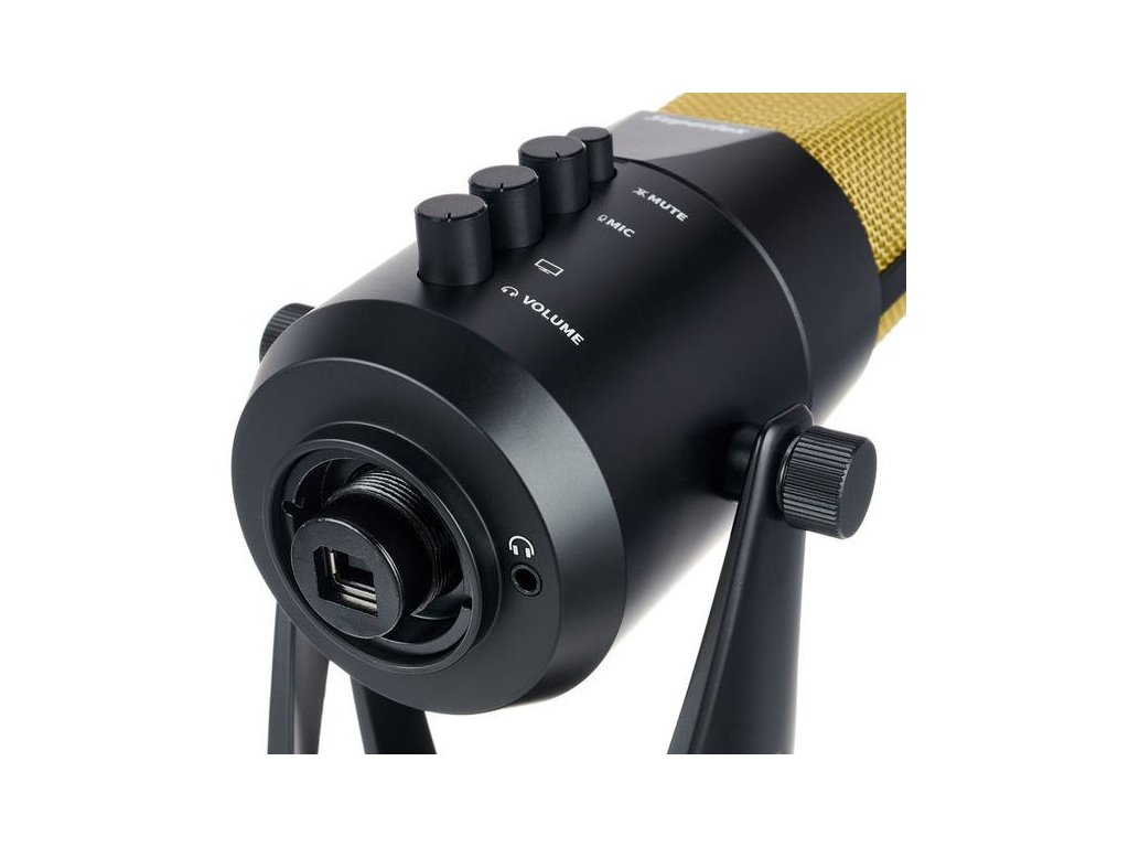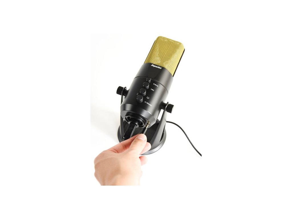 Mikrofon wielkomembranowy zawiera jednocalową kapsułę mikrofonową umieszczoną w solidnej plastikowej obudowie. Za pomocą przetwornika A/D można nagrywać nagrania bezpośrednio do oprogramowania DAW, a po podłączeniu słuchawek uzyskuje się maksymalną kontrolę w czasie rzeczywistym dzięki zerowej latencji. Sygnał wejściowy można regulować za pomocą trzech potencjometrów na przednim panelu sterowania. Korpus mikrofonu jest osadzony w regulowanym uchwycie, który umożliwia zmianę kąta przechwytywania sygnału dźwiękowego.