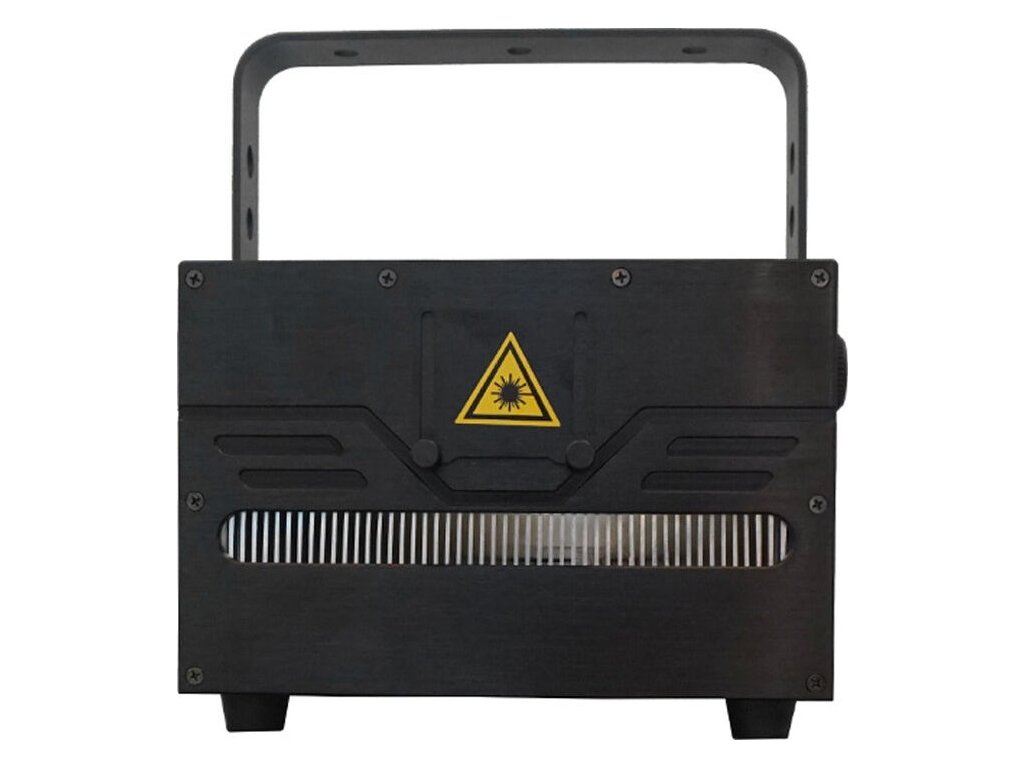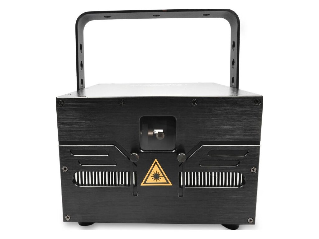 Elektronika projektora laserowego zamknięta jest w solidnej, metalowej obudowie wyposażonej w uchwyt montażowy, który umożliwia instalację urządzenia na specjalnych hakach, konstrukcjach scenicznych i rampach oświetleniowych. W przedniej części znajduje się układ optyczny składający się z emiterów światła laserowego oraz odchylnych luster połączonych z szybkimi silnikami krokowymi. Dzięki nim pokaz świetlny porusza się w przestrzeni, jest ekspresyjny i dynamiczny.