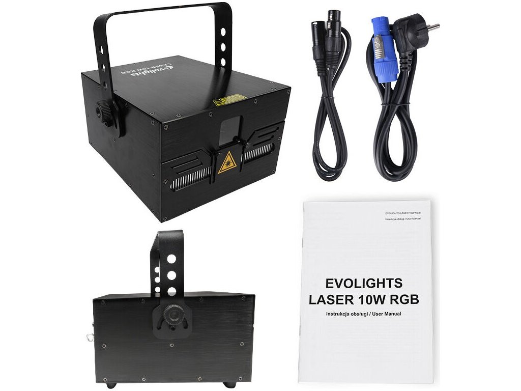 EVOLIGHTS LASER 10W RGB to bez wątpienia profesjonalne oświetlenie sceniczne. Marka Evolights przygotowała dla Ciebie urządzenie, które doskonale sprawdza się na wszelkiego rodzaju scenach, jako laser dyskotekowy w klubach i na dyskotekach podczas imprez prowadzonych przez DJ-ów, a także jako oświetlenie efektowe podczas pokazów, występów i różnego rodzaju eventów.