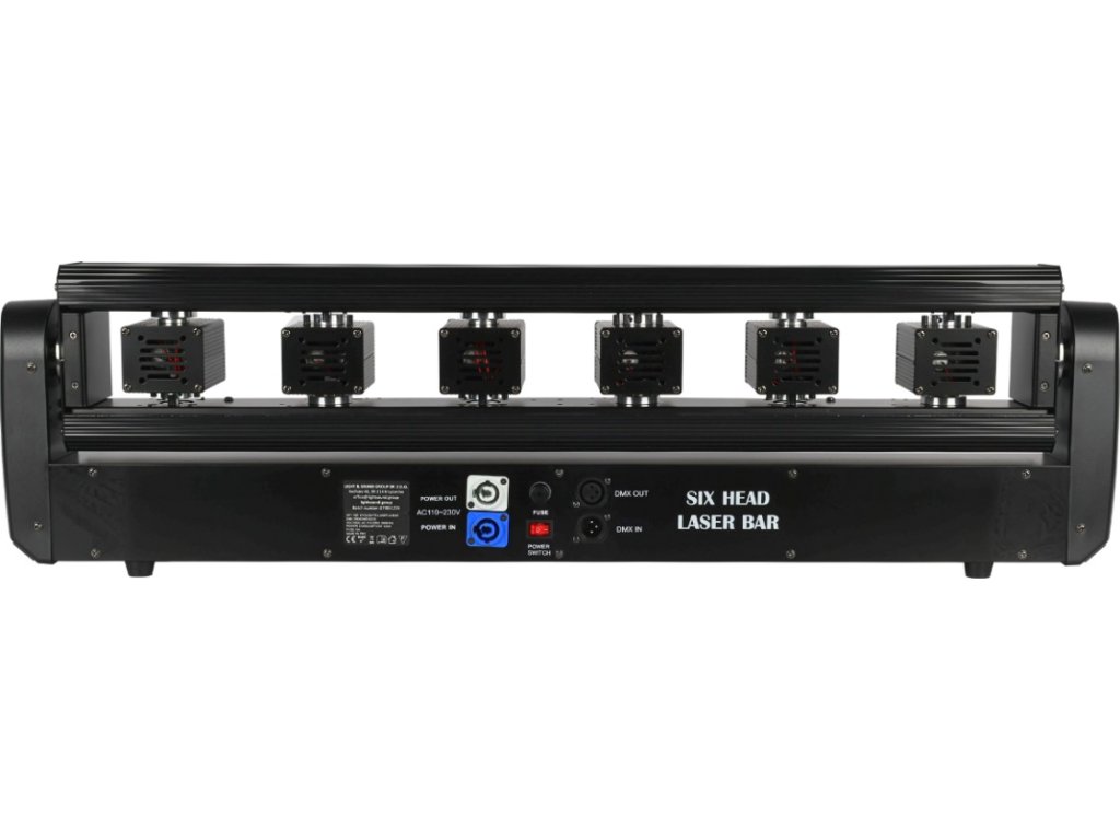 Listwa wyposażona jest w 6 wydajnych źródeł światła laserów w palecie RGB i pozwala na tworzenie niesamowitych miksów kolorów oraz precyzyjnych wzorów świetlnych. Dzięki sześciu programom automatycznym z regulacją prędkości oraz dwóm programom w trybie sound z regulacją czułości mikrofonu urządzenie może pracować całkowicie autonomicznie lub idealnie reagować na rytm muzyki. Dwadzieścia efektów Color Chase z regulacją prędkości, liniowy ściemniacz (0–100 %) oraz siedem statycznych kolorów dla każdego źródła światła dają Ci niezrównaną swobodę twórczą. Twórz pokazy świetlne jak na światowych scenach – i to bez skomplikowanej obsługi.