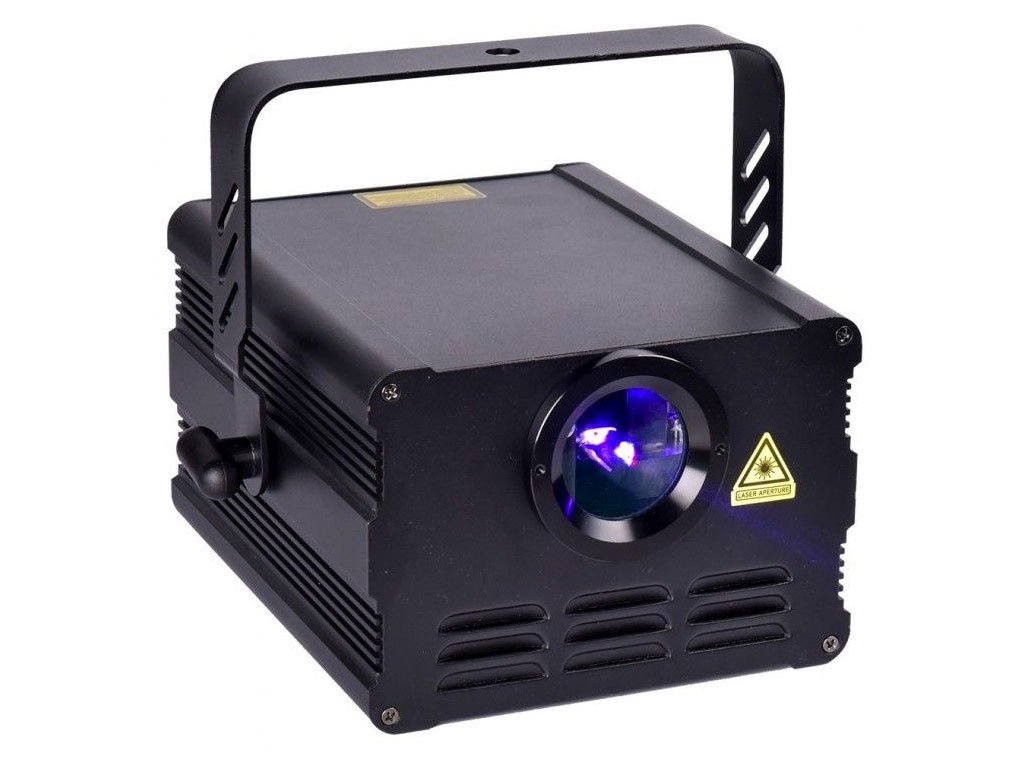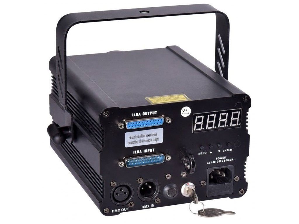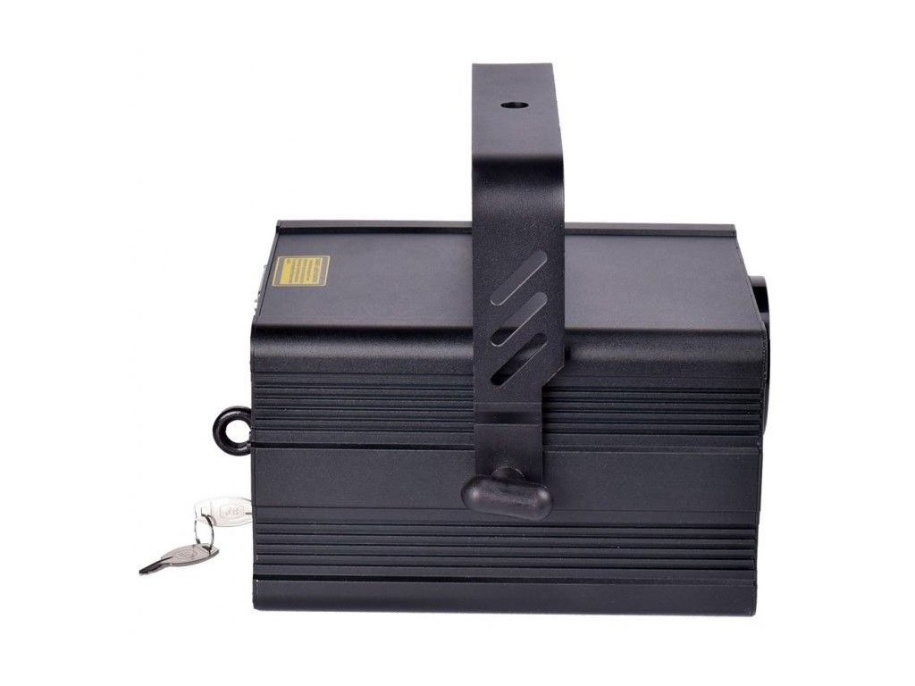 Komponenty urządzenia umieszczone są w solidnej, sześciennej obudowie. Z tyłu urządzenia znajduje się gniazdo zasilania, wejście i wyjście dla sygnałów sterujących DMX oraz wejście i wyjście ILDA. Dzięki niemu możemy połączyć projektor laserowy z komputerem i – za pomocą specjalnego oprogramowania – tworzyć własne wzory, napisy i animacje. Z tyłu obudowy znajduje się również panel sterowania w postaci wyświetlacza LED i czterech przycisków. Za ich pomocą możemy regulować prędkość wyświetlania animacji, adresować urządzenie lub po prostu wybrać jeden z pięciu trybów pracy, które nas interesują:
