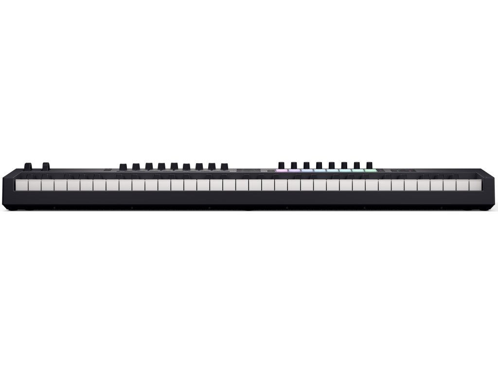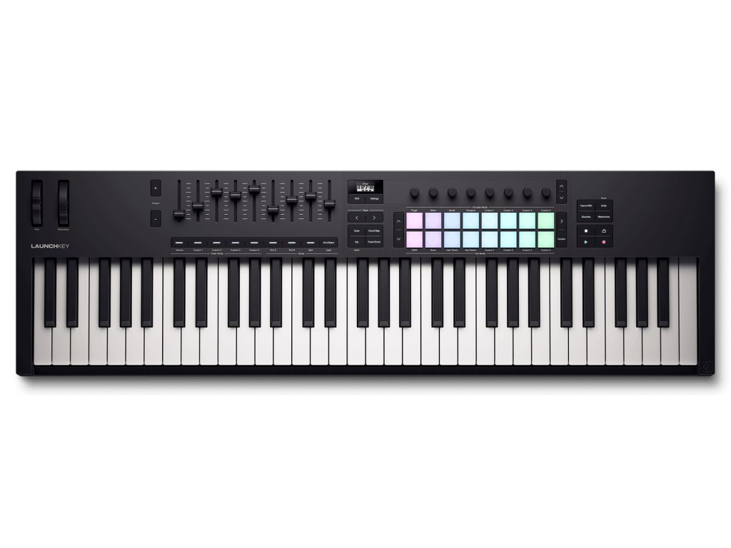 Novation Launchkey 61 to potężny kontroler DAW z półważoną klawiaturą typu waterfall, ośmioma enkoderami ciągłymi, dziewięcioma faderami i 16 czułymi na nacisk padami do finger drummingu i uruchamiania klipów. Kontroler zawiera również kreatywne tryby Chord i Scale, które współpracują z wyświetlaczem OLED, aby ułatwić trzymanie się tonacji.