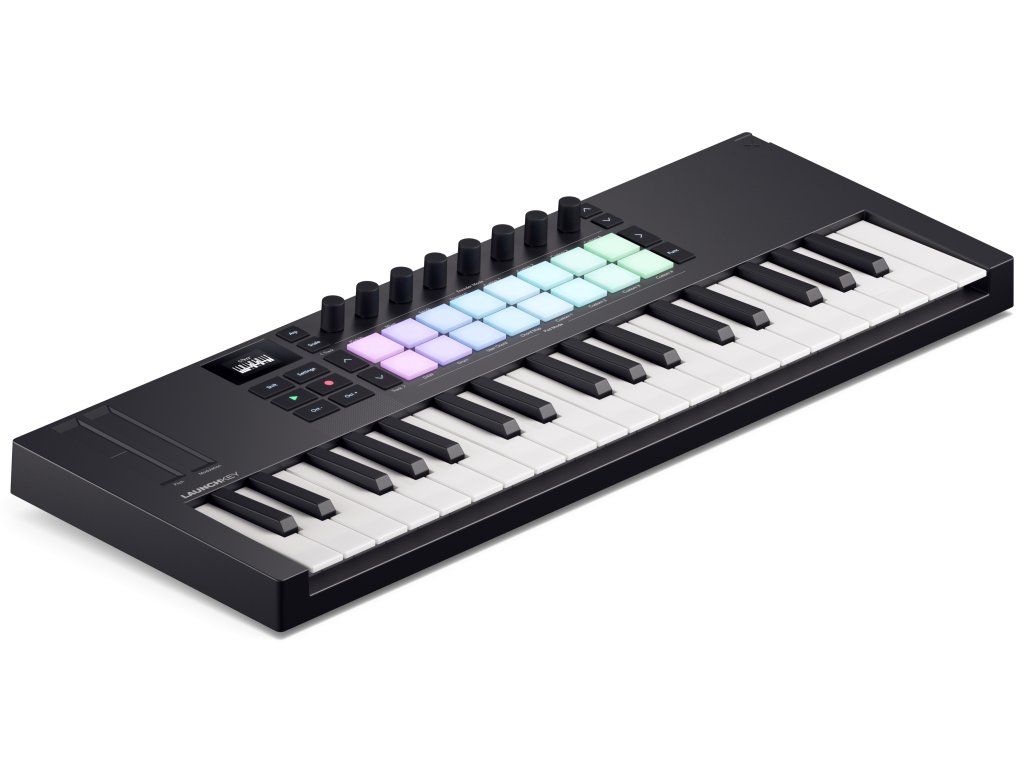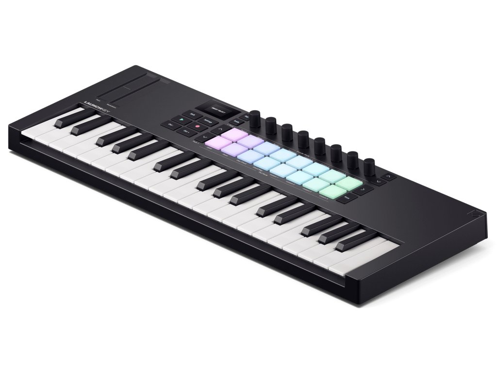 Novation Launchkey Mini 37 to wydajny kontroler DAW z mini klawiaturą typu synth, ośmioma ciągłymi enkoderami i 16 czułymi na nacisk padami do finger drummingu i uruchamiania klipów. Kontroler zawiera również kreatywne tryby Chord i Scale, które współpracują z wyświetlaczem OLED, aby ułatwić trzymanie się tonacji.
