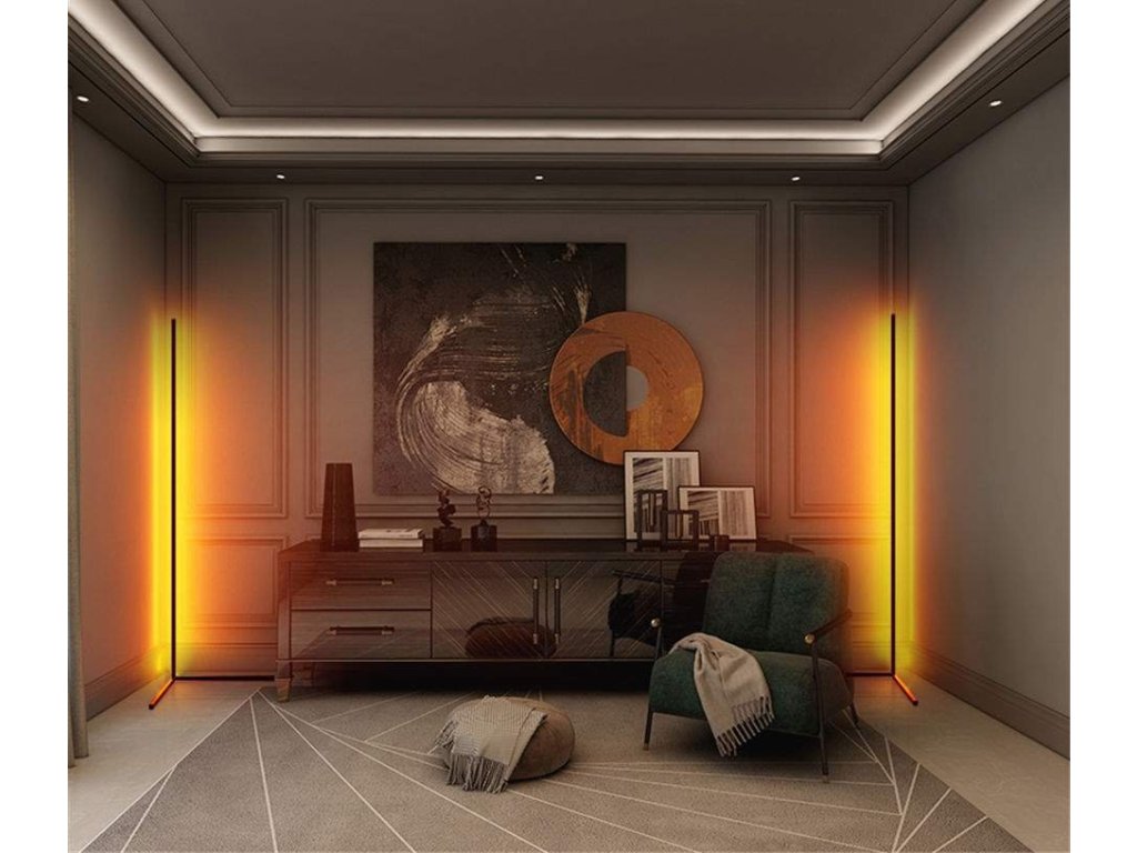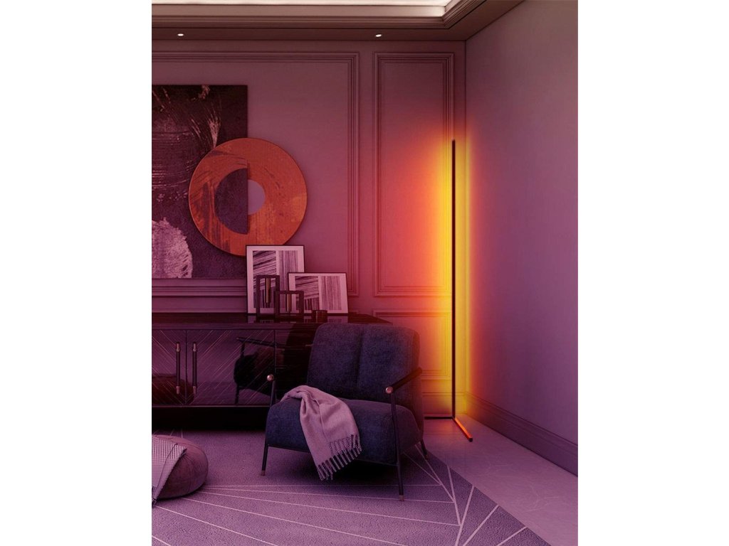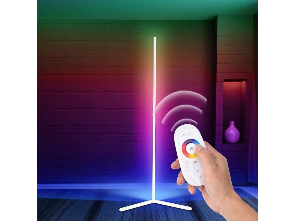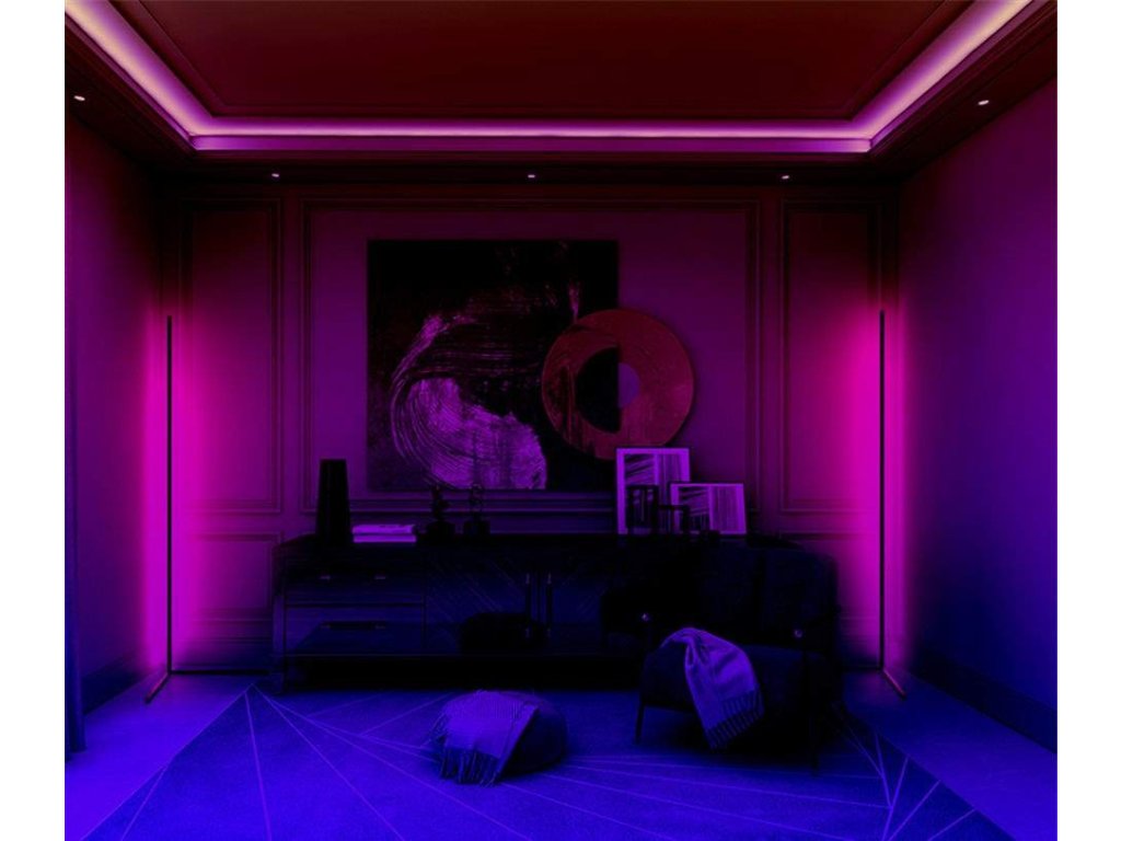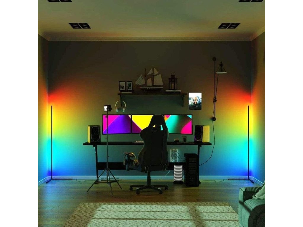 Minimalistyczna lampa narożna z paskiem LED RGB nada Twojemu studio nagrań, biuru lub salonowi idealną atmosferę do nagrywania nowych piosenek, oglądania filmów lub grania w gry. Lampa posiada 84 diody i można nią sterować za pomocą pilota, który oferuje możliwość ściemniania, dimmer i inne tryby oświetlenia.