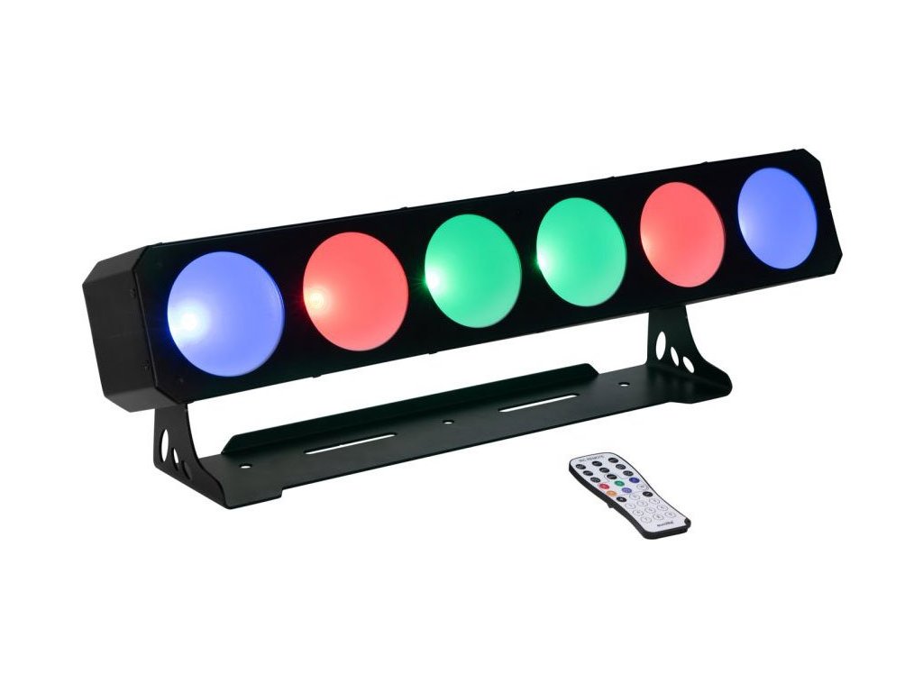 LED-owy zmieniacz kolorów wyposażony w wydajne diody LED 6 x 30W COB TCL. Mieszanie kolorów RGB, niezależne sterowanie każdym reflektorem, maksymalny kąt świecenia 38, efekt Strobe, ściemnianie i funkcja Master/Slave. Sterowanie DMX (2/3/5/9/18/21 kanałów), Eurolite QuickDMX USB Wireless Transmitter/Receiver, automatyczne programy wewnętrzne, sterowanie dźwiękiem za pomocą wbudowanego mikrofonu z regulacją czułości lub pilotem IR. Ustawianie trybów pracy za pomocą wyświetlacza LED z panelem sterowania. Solidna konstrukcja, możliwość ustawienia i zawieszenia, regulowany uchwyt montażowy, odpowiedni do mobilnych zastosowań i stałych instalacji. Możliwość szeregowego podłączenia do 8 LED BAR, impulsowy zasilacz.