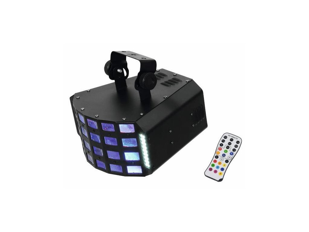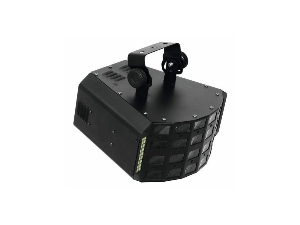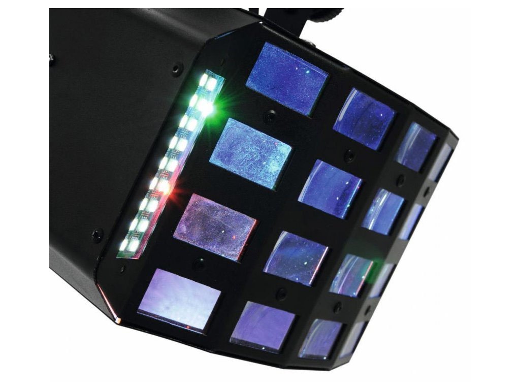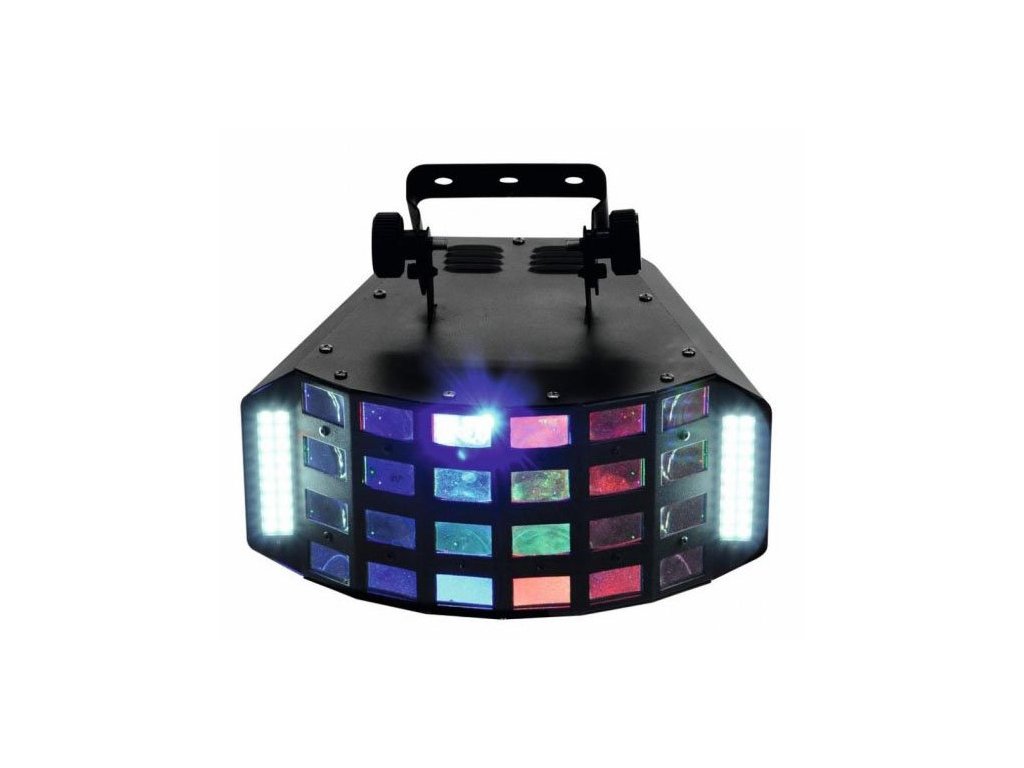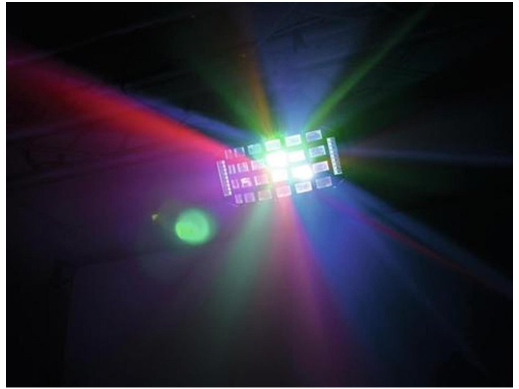 Wydajny LED Derby i efekt stroboskopowy w jednym urządzeniu. Diody LED Bright R, G, B, A, W & P są umieszczone za soczewkami; białe diody LED SMD znajdują się po lewej i prawej stronie z przodu urządzenia. Możliwość pracy w trybie autonomicznym lub przez DMX. Sterowanie DMX512 jest możliwe za pomocą dowolnego komercyjnego regulatora DMX (zajmuje maks. 13 kanałów). 4 lub 13 kanałów DMX, które można wybrać do licznych zastosowań. Możliwość sterowania dźwiękiem za pomocą wbudowanego mikrofonu. Regulowana czułość mikrofonu za pomocą panelu sterowania. Kolorowe promienie zmieniają kierunek ruchu w każdym trybie basów w trybie sterowania dźwiękiem. Wygodne adresowanie i ustawianie za pomocą panelu sterowania z wyświetlaczem LED i czterema przyciskami sterującymi. Dodatkowa możliwość sterowania za pomocą pilota EUROLITE IR-7, zawartego w dostawie. Funkcje: Statyczne kolory, mieszanka kolorów RGBAWP, tryb automatyczny, sterowanie dźwiękiem, programy wewnętrzne, ustawianie ściemniacza i stroboskopu za pomocą DMX, Master / Slave. Z diodami LED 6 x 3 W RGBAWP i 36 x diodami SMD w kolorze białym.