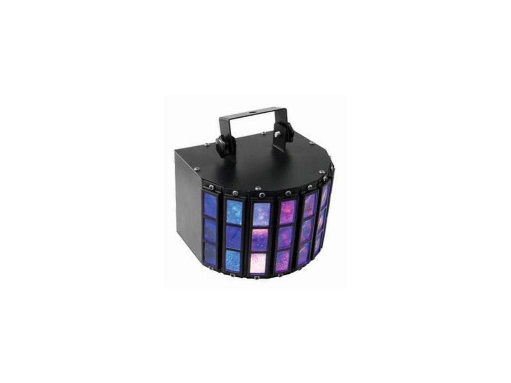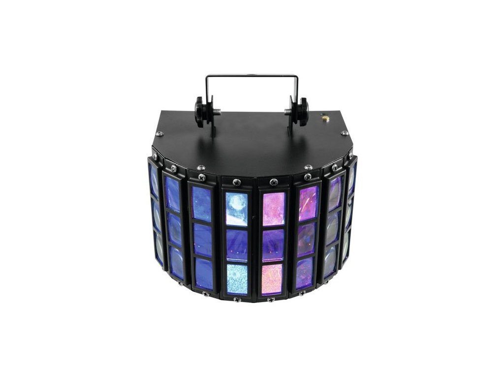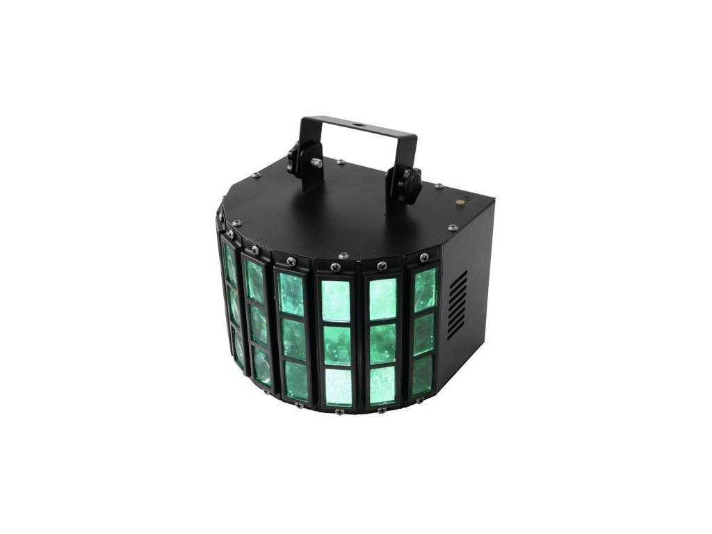 Wiązki wychodzą z każdego obiektywu, wykonują ruch okrężny i zmieniają kierunek ruchu przy każdym tonie basowym. 4 rzędy obiektywów z łącznie 24 szklanymi soczewkami zapewniają efekt wypełniania pomieszczeń. Sterowanie dźwiękiem za pomocą wbudowanego mikrofonu. Kombinacja kolorów nieustannie się zmienia dzięki wewnętrznemu programowi z nieprzerwaną pętlą. Czułość mikrofonu jest regulowana obrotowym pokrętłem. Łatwa instalacja za pomocą uchwytu. Do pomieszczeń towarzyskich, małych dyskotek lub dla mobilnych DJ-ów. Praktyczny rozmiar, łatwy do przenoszenia. Urządzenie jest wyposażone w diody LED 6 x 3 W: 2 x czerwona, 1 x zielona, 1 x niebieska, 1 x pomarańczowa, 1 x biała. Gotowy do podłączenia za pomocą kabla zasilającego z wtyczką bezpieczeństwa.