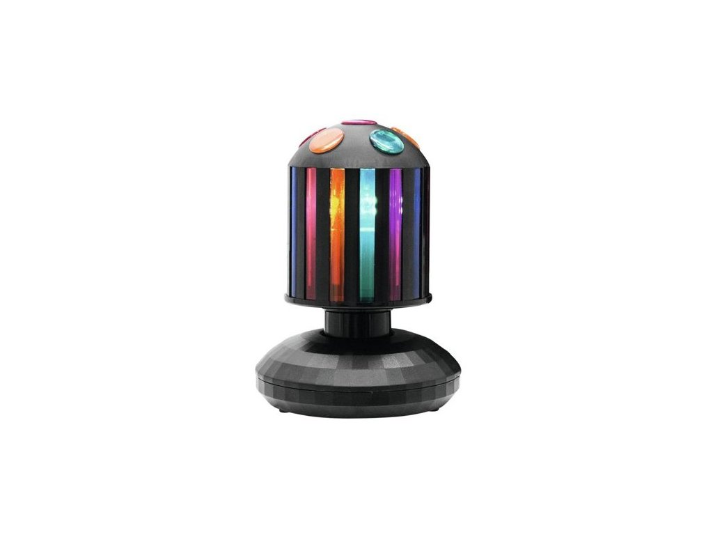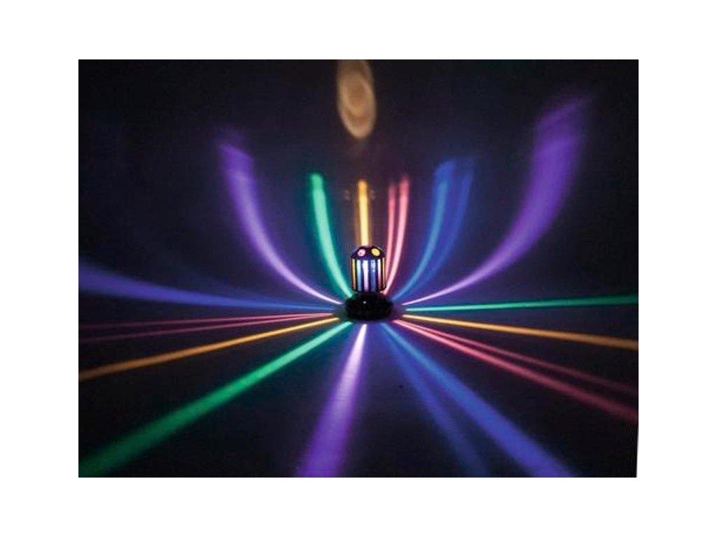 Ułożyskowanie cylindra obraca się wokół własnej osi. 18 obrotów na minutę. Jasne, intensywne kolory. Do trwałej instalacji. Niskie zużycie energii. Do 1 x lampy E-14 z 4 diodami LED (w zestawie). Gotowy do użycia dzięki kablowi zasilającemu z wtyczką Euro i zintegrowanym włącznikiem. Idealny do pomieszczeń imprezowych, małych dyskotek lub dla mobilnych DJ-ów.