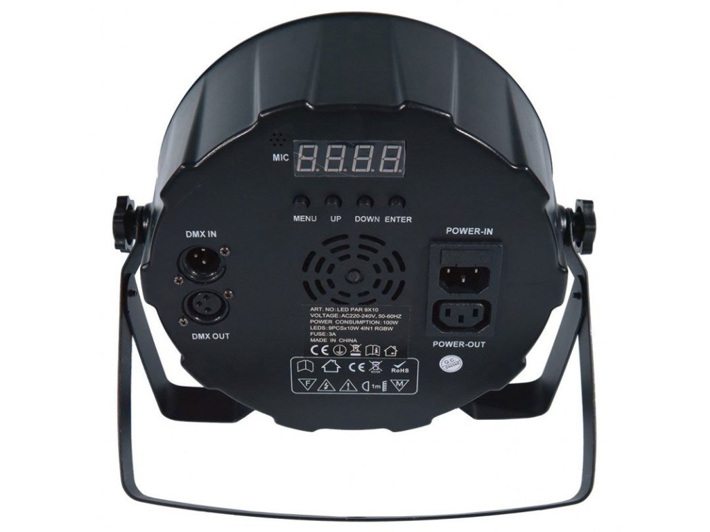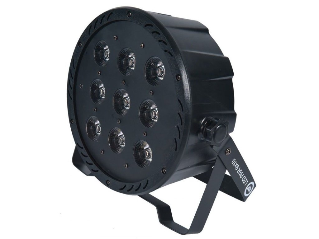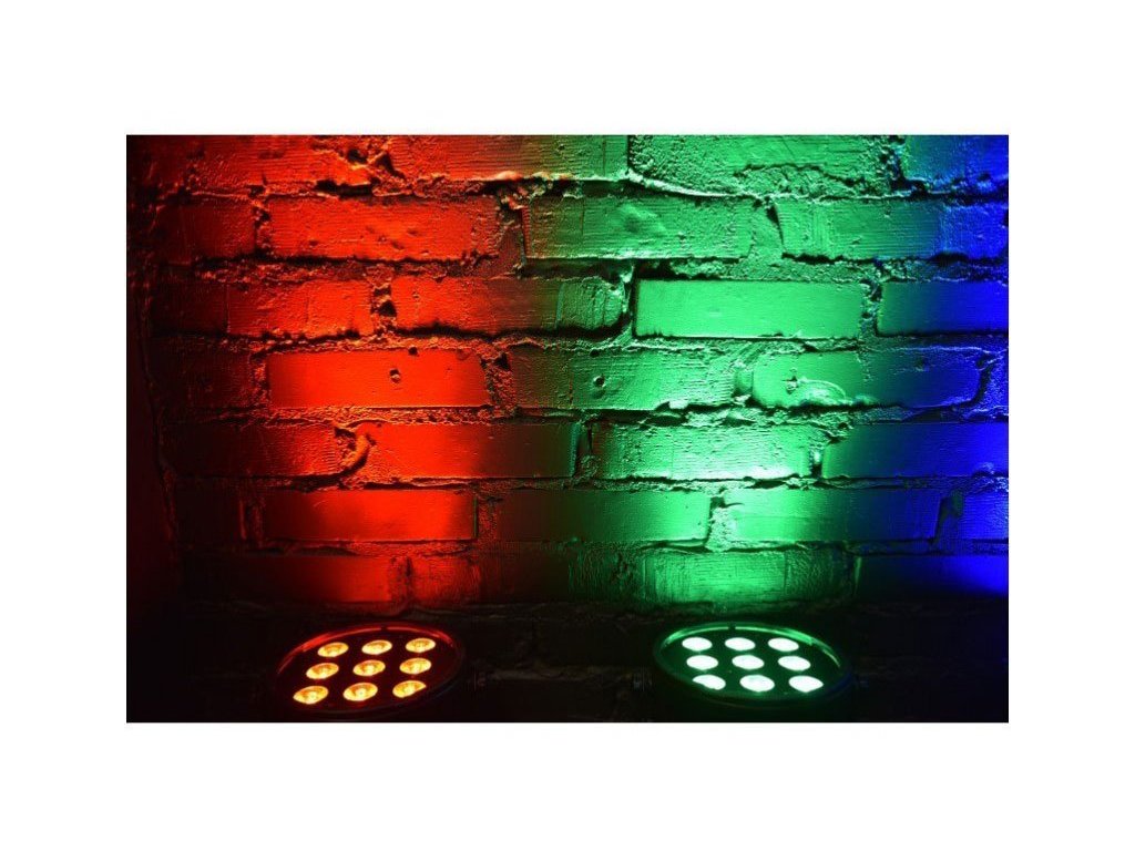 Wydajny reflektor PAR w kompaktowej, płaskiej obudowie. Umożliwia łatwe umieszczenie wszędzie tam, gdzie chcesz uzyskać unikalny efekt oświetlenia. Urządzenie jest wyposażone w dziewięć 10-watowych diod LED pracujących w palecie kolorów RGBW. W tylnej części obudowy znajduje się wyjście 230 V (w tym łączenie szeregowe), wejście i wyjście DMX oraz intuicyjny panel sterowania oparty na prostym module, który zawiera wyświetlacz LED i cztery przyciski zasilania. Za ich pomocą możemy wybrać jeden z czterech trybów pracy: