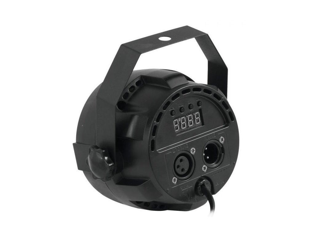 LED Party spot jest wyposażony w 12 diod LED 1W (3x1W czerwona, 3x1W zielona, 3x1W niebieska i 3x1W biała). Sterowanie za pomocą sygnału DMX (6 kanałów), funkcja Master/Slave, wbudowany mikrofon do sterowania muzyką. Funkcje statycznych kolorów, mieszanie kolorów RGBW, ściemnianie, efekt Strobo. Kąt świecenia 13.