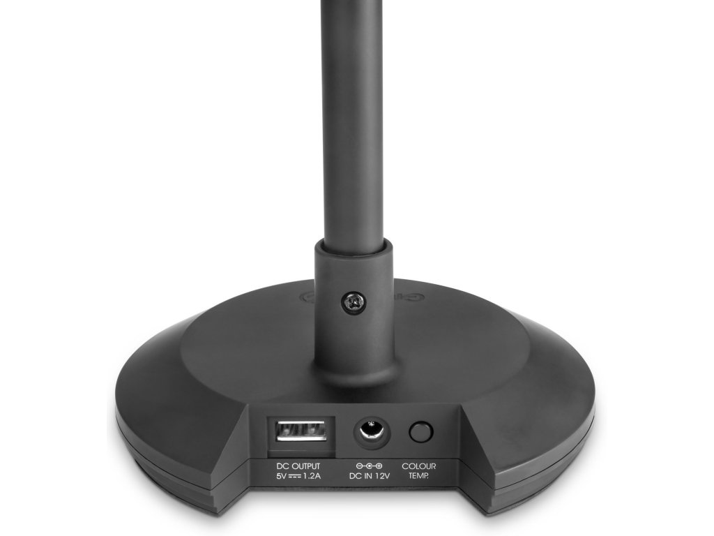 Ultracienka, elegancka lampa stołowa w kształcie litery L z silikonową powierzchnią zapewnia równomierne oświetlenie dokładnie tam, gdzie go potrzebujesz. Lampa jest wyposażona w listwę 18 diod LED, które można przełączać między ciepłą lub zimną białą barwą (około 3000/6000 K). Dotykowy przycisk zasilania służy jako płynny włącznik ściemniacza. Lampa stołowa posiada również zintegrowany port USB do ładowania smartfonów i tabletów. Lampa jest dostarczana z zasilaczem 12 V.