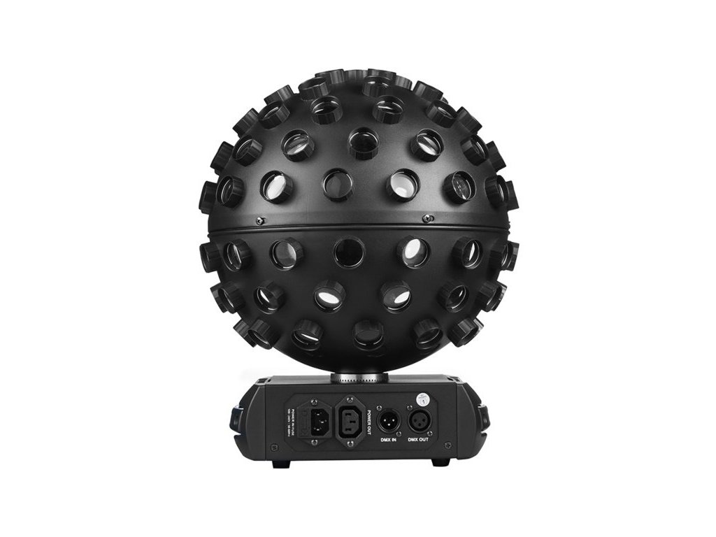 LIGHT4ME LED SPHERE charakteryzuje się solidną obudową w eleganckim czarnym kolorze, kompaktowymi wymiarami i niską wagą, co umożliwia bezproblemowy transport i przechowywanie. Solidny uchwyt montażowy umożliwia szybką, łatwą i wygodną instalację urządzenia. Stopień ochrony IP20 chroni urządzenie przed wnikaniem ciał stałych o średnicy 12,5 mm. Złącza DMX umożliwiają sterowanie oświetleniem za pomocą protokołu DMX, natomiast złącza zasilania umożliwiają łączenie szeregowe zasilania bezpośrednio z urządzenia do urządzenia, co jest przydatne w instalacjach oświetleniowych składających się z wielu urządzeń.