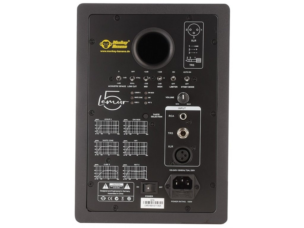 Oprócz sześciu różnych ustawień głośnikowych oferuje również trójpozycyjny filtr Low Cut (0/47/80 Hz), filtr MF i HF, wyłączane funkcje Limiter i Standby. Jeśli chodzi o same głośniki, Lemur5 posiada aluminiowy głośnik wysokotonowy, który zapewnia precyzyjne odwzorowanie z wysoką rozdzielczością przez długi czas. Kewlarowy głośnik basowy z kolei zadba o precyzyjny i mocny bas. Głośniki są zasilane wysokiej jakości wzmacniaczem klasy D ze sterowaniem DPS o mocy 30W (HF) i 80W (LF).