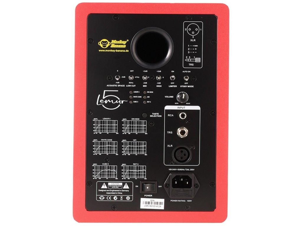 Oprócz sześciu różnych ustawień głośnikowych oferuje również trójpozycyjny filtr Low Cut (0/47/80 Hz), filtr MF i HF, wyłączane funkcje Limiter i Standby. Jeśli chodzi o same głośniki, Lemur5 posiada aluminiowy głośnik wysokotonowy, który zapewnia precyzyjne odwzorowanie z wysoką rozdzielczością przez długi czas. Kewlarowy głośnik basowy z kolei zadba o precyzyjny i mocny bas. Głośniki są zasilane wysokiej jakości wzmacniaczem klasy D ze sterowaniem DPS o mocy 30W (HF) i 80W (LF).