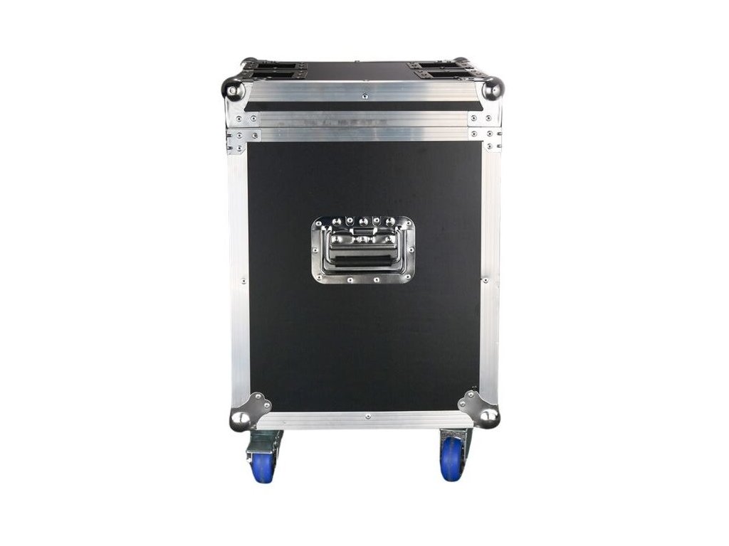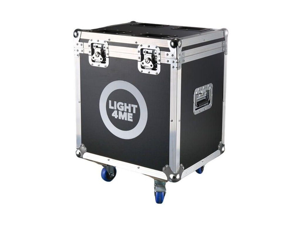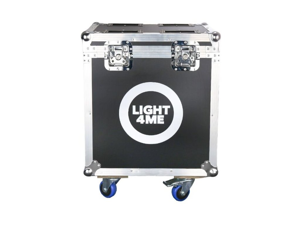 Light4me Line Beam 230 case 2in1 to profesjonalny kufer transportowy przeznaczony do głowicy ruchomej Line Beam 230W, który pomieści 2 jednostki tego typu lub inne urządzenia o podobnych wymiarach. Kufer jest wykonany z mocnej sklejki pokrytej czarną, wodoodporną powłoką o teksturze plastra miodu. Jej krawędzie wzmocnione są aluminiowymi profilami, a rogi stalowymi okuciami. Wyposażony jest w dwa uchwyty, które umożliwiają jego łatwe przenoszenie, oraz cztery obrotowe kółka (z których dwa posiadają aretację), które ułatwiają przemieszczanie i transport urządzenia. Pokrywa otwiera się z jednej strony. Jest zamykana na dwa solidne zamki motylkowe. Wewnątrz znajdują się dwie przegrody na głowice ruchome Light4Me Line Beam 230 W oraz węższa przegroda na akcesoria.