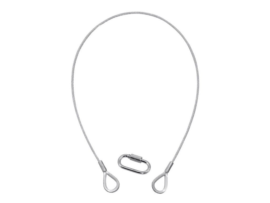 Linka zabezpieczająca 3 x 600 mm, do 5 kg, srebrna. Zaprojektowano zgodnie z europejskimi standardami DIN EN 12385-4:2008-06 i DIN 56927:2009-03. Odpowiednia do zabezpieczania ładunków zawieszonych nad osobami. Linka z okrągłych splotek 6 x 19M z rdzeniem włóknistym. Z dwoma końcowymi zaczepami. W zestawie karabińczyk 3,5 mm (typ A). Testowane zgodnie z DIN EN 10204.