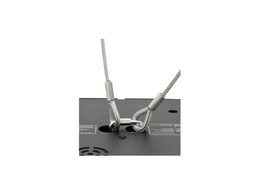 Linka zabezpieczająca 4 x 1000 mm, do 15 kg, czarna, srebrne karabińczyki. Zaprojektowano zgodnie z europejskimi standardami DIN EN 12385-4:2008-06 i DIN 56927:2009-03. Odpowiednia do zabezpieczania ładunków zawieszonych nad osobami. Linka z okrągłych splotek 6 x 19M z rdzeniem włóknistym. Z dwoma końcowymi zaczepami. W zestawie karabińczyk 4 mm (typ A). Testowane zgodnie z DIN EN 10204.