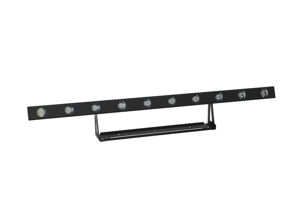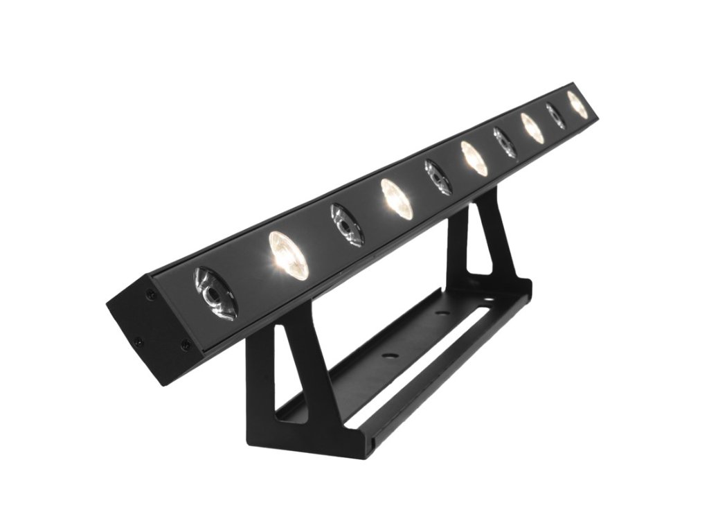 Listwa oświetleniowa wyposażona w dziesięć białych diod LED o mocy 5 W. Każda dioda LED może być sterowana indywidualnie. Temperatura barwowa 3200 K, funkcja ściemniania i efekt Strobo. Wąski kąt świecenia 6°. Sterowanie sygnałem DMX (1, 3, 5, 10 lub 15 kanałów sterujących), sterowanie dźwiękiem za pomocą wbudowanego mikrofonu z regulowaną czułością, automatyczny tryb pracy, funkcja Master/Slave. Wbudowane programy do trybu sterowania muzyką i trybu automatycznego. Przełączany zasilacz między 100 a 240 V, złącza zasilania P-Con, możliwość szeregowego zasilania więcej listew świetlnych. Panel sterowania z wyświetlaczem LED do ustawiania adresu DMX i podstawowych trybów pracy. Solidna konstrukcja, regulowany uchwyt montażowy.