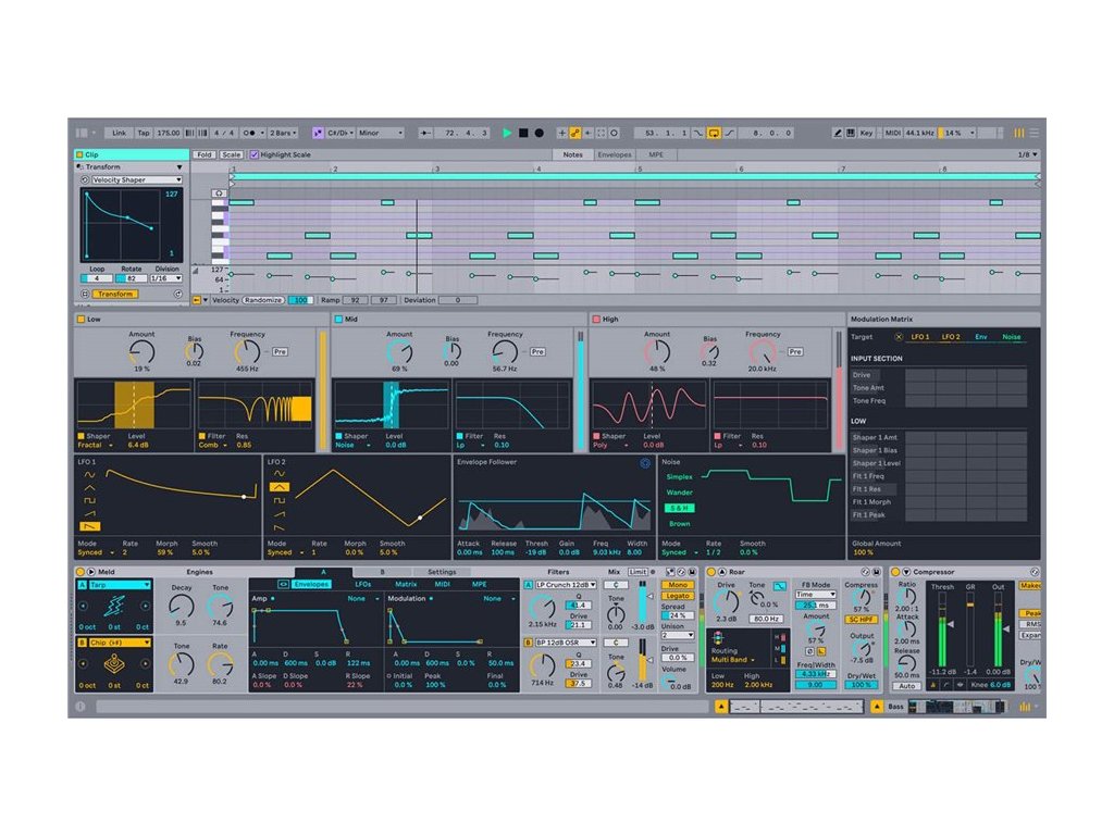 Do sekwencjonowania muzyki można użyć liniowego widoku Arrangement View lub widoku Session View, gdzie można improwizować i testować pomysły bez ograniczeń w osi czasu. Dzięki Live warping możesz zmieniać tempo i czas dowolnego dźwięku w czasie rzeczywistym podczas pracy. Nagrywaj instrumenty MIDI lub audio, wokale lub inne dźwięki i używaj kreatywnych funkcji aplikacji Live, aby udoskonalić swoje występy, inspirować nowe pomysły lub przekształcać spontaniczne momenty w muzykę. Użyj funkcji Sound Similarity, aby znaleźć presety i dźwięki porównywalne z tymi, z którymi aktualnie pracujesz. Stwórz swoje brzmienie dzięki bogatej ofercie narzędzi i efektów Live lub stwórz coś nowego z różnorodnej kolekcji pakietów. A ponieważ oprogramowanie pozwala na wykonywanie wszystkiego w czasie rzeczywistym i jest nieskończenie konfigurowalne, jest idealne do występów na żywo i pracy studyjnej. Na koniec jest Push: ekspresyjne narzędzie sprzętowe, które daje ci niezależność od komputera, dzięki czemu możesz w pełni poświęcić się muzyce.