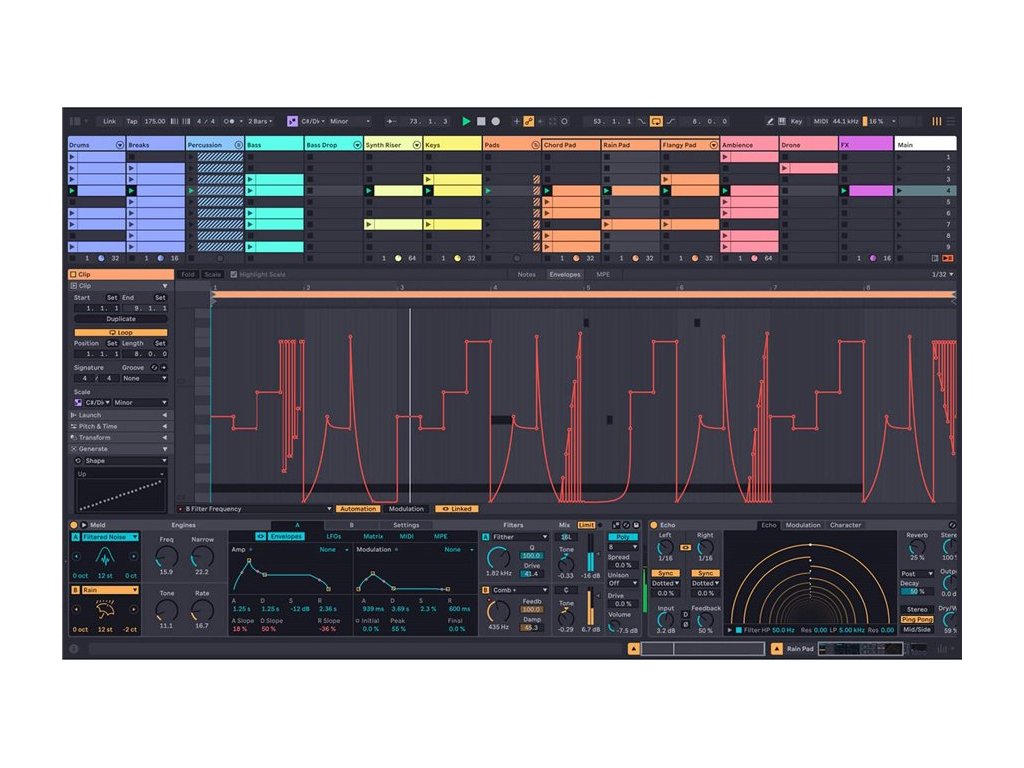 Do sekwencjonowania muzyki można użyć liniowego widoku Arrangement View lub widoku Session View, gdzie można improwizować i testować pomysły bez ograniczeń w osi czasu. Dzięki Live warping możesz zmieniać tempo i czas dowolnego dźwięku w czasie rzeczywistym podczas pracy. Nagrywaj instrumenty MIDI lub audio, wokale lub inne dźwięki i używaj kreatywnych funkcji aplikacji Live, aby udoskonalić swoje występy, inspirować nowe pomysły lub przekształcać spontaniczne momenty w muzykę. Użyj funkcji Sound Similarity, aby znaleźć presety i dźwięki porównywalne z tymi, z którymi aktualnie pracujesz. Stwórz swoje brzmienie dzięki bogatej ofercie narzędzi i efektów Live lub stwórz coś nowego z różnorodnej kolekcji pakietów. A ponieważ oprogramowanie pozwala na wykonywanie wszystkiego w czasie rzeczywistym i jest nieskończenie konfigurowalne, jest idealne do występów na żywo i pracy studyjnej. Na koniec jest Push: ekspresyjne narzędzie sprzętowe, które daje ci niezależność od komputera, dzięki czemu możesz w pełni poświęcić się muzyce.