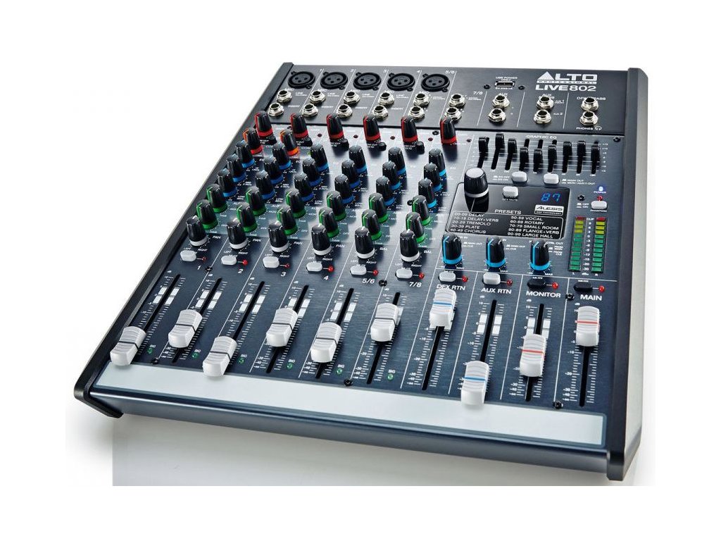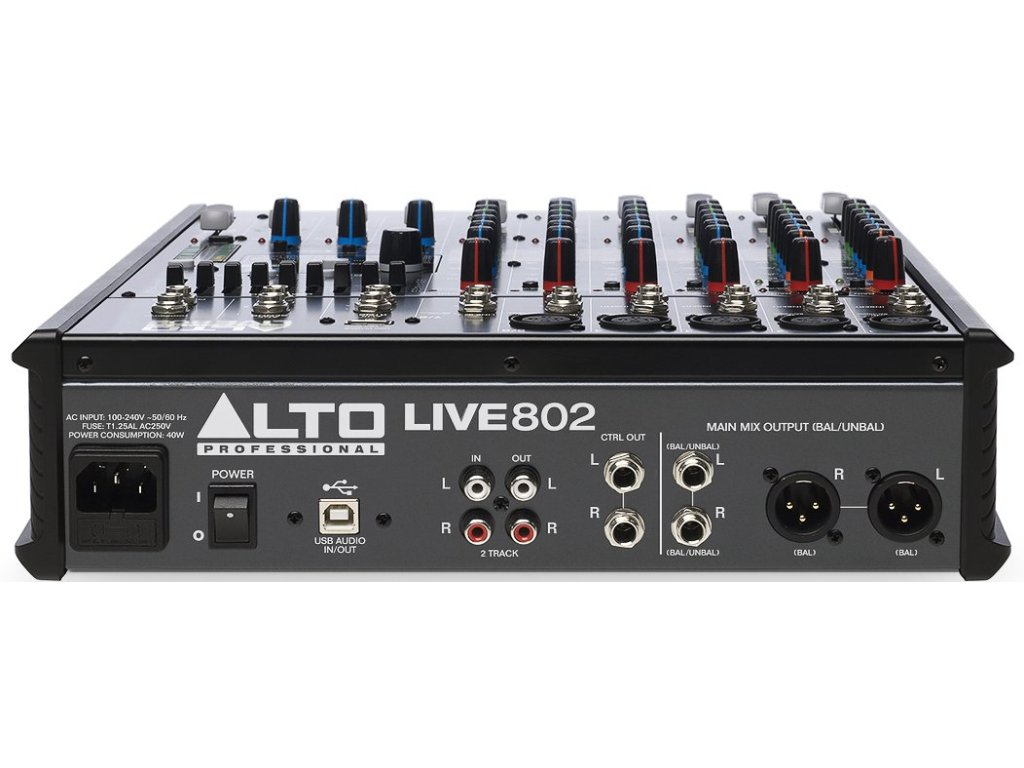 - Wyjścia XLR i 6.3mm, wysyłki i powroty aux 6.3mm