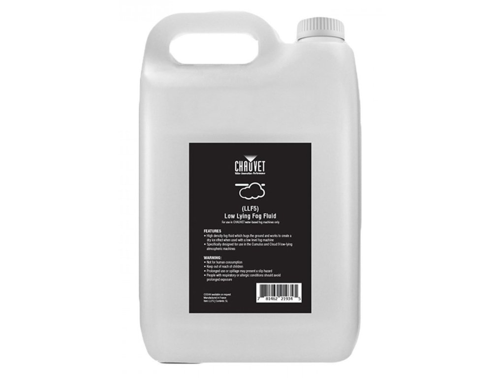 Płyn do wytwarzania niskiej mgły o składzie na bazie wody. Tworzy gęstą chmurę niskiej mgły, która pokrywa podłogę. Płyn LLF5, specjalnie stworzony do użytku w wytwornicach Cumulus i Cloud 9, pomaga tworzyć ciągłe obłoki mgły, które pokrywają podłogę i nie pozostawiają żadnych resztek. Płyn jest nietoksyczny, niepalny i nieperfumowany.