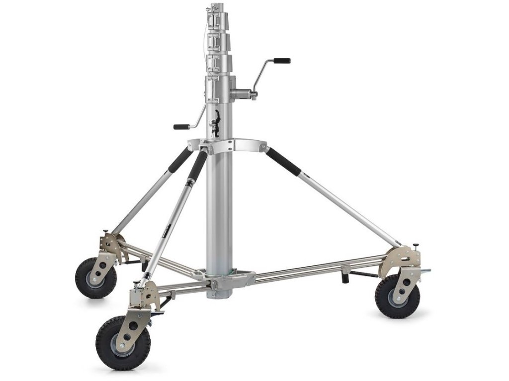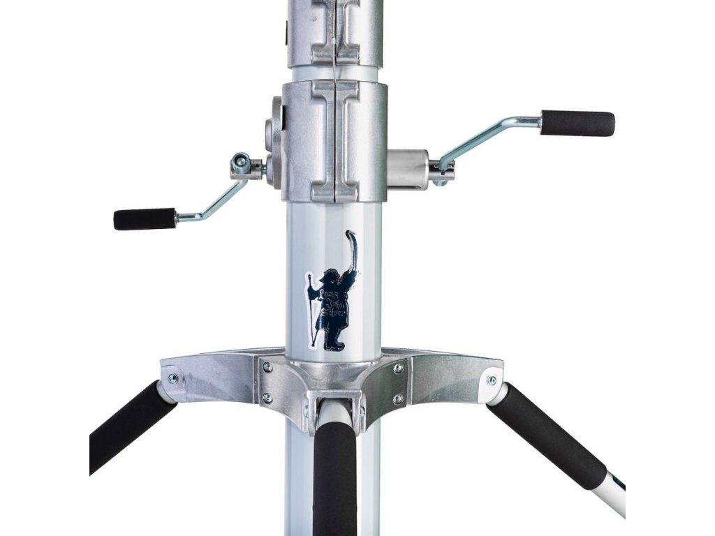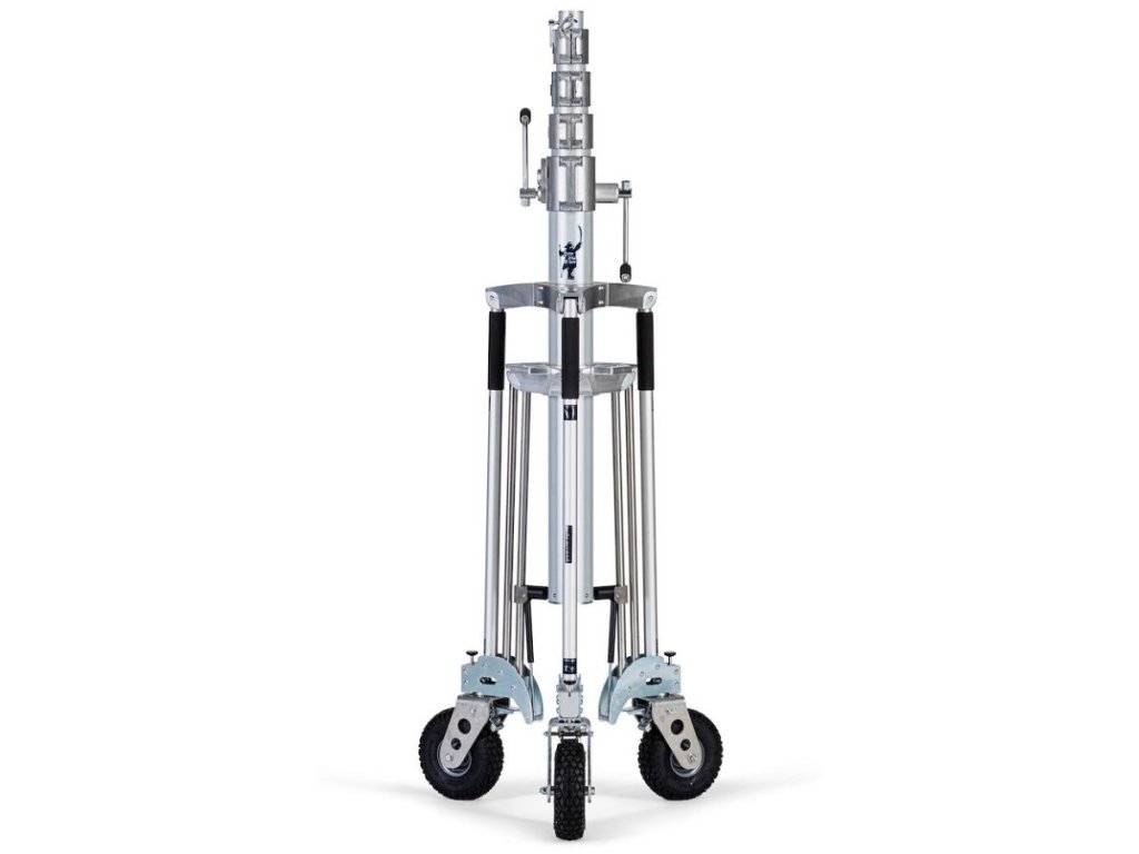Statyw Avenger Long John Silver to wysoce wytrzymały statyw o maksymalnej nośności 120 kg. Częścią produktu są hamowane koła z piankowym wypełnieniem, zapewniające płynny ruch nawet w najtrudniejszych warunkach terenowych. Statyw jest wykonany ze stali, która charakteryzuje się 5 sekcjami. Statyw ma nóżki poziomujące, które wyrównują niewielkie różnice w poziomie terenu. System podnoszenia napędzany wciągarką umożliwia podniesienie na wysokość 5,78 m do 120 kg.