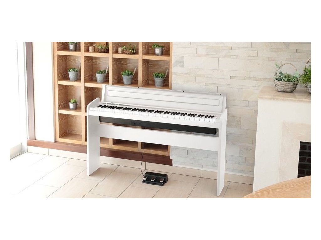 Przy wyborze pianina cyfrowego kluczowe są pewne aspekty, a jednym z pierwszych jest wygląd. Wąskie, stylowe LP-180 można zatem wybrać w wariancie czarnym lub białym, tak aby kolorystycznie pasowało do Twojego mieszkania lub pokoju. Kolejnym istotnym parametrem jest oczywiście własne brzmienie instrumentu. KORG, jako światowej sławy producent profesjonalnych instrumentów klawiszowych najwyższej jakości, zaimplementował niektóre ze swoich sprawdzonych brzmień właśnie do LP-180, co gwarantuje doskonały poziom dźwięków tego instrumentu. Pianino cyfrowe jest dodatkowo dostarczane z całym niezbędnym wyposażeniem, w tym z pedałami fortepianowymi.