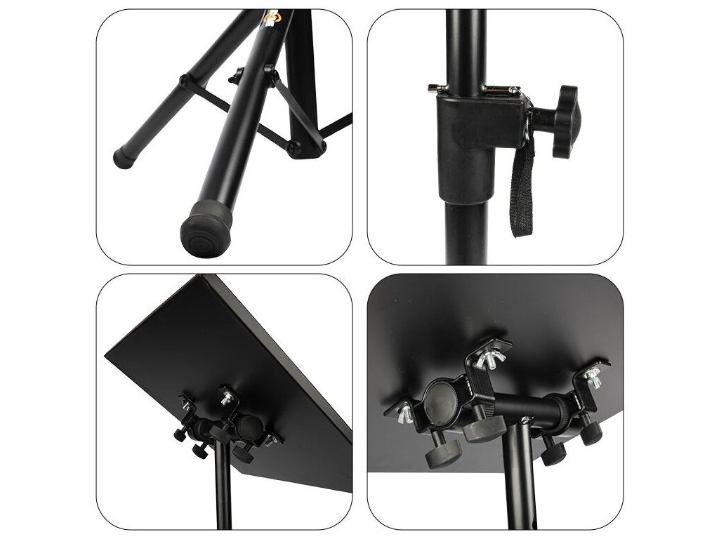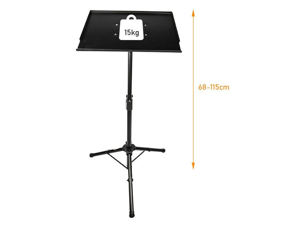 STAND4ME LPS to solidny i stabilny statyw na laptopa lub projektor. Stojak wykonany jest ze stali malowanej proszkowo na kolor czarny. Idealnie nadaje się na koncerty, dla mobilnych DJ-ów, do szkół oraz domowych i profesjonalnych studiów nagraniowych. Stojak może być również używany do mikserów lub innych typów urządzeń i efektów używanych przez zespoły muzyczne i wokalistów.
