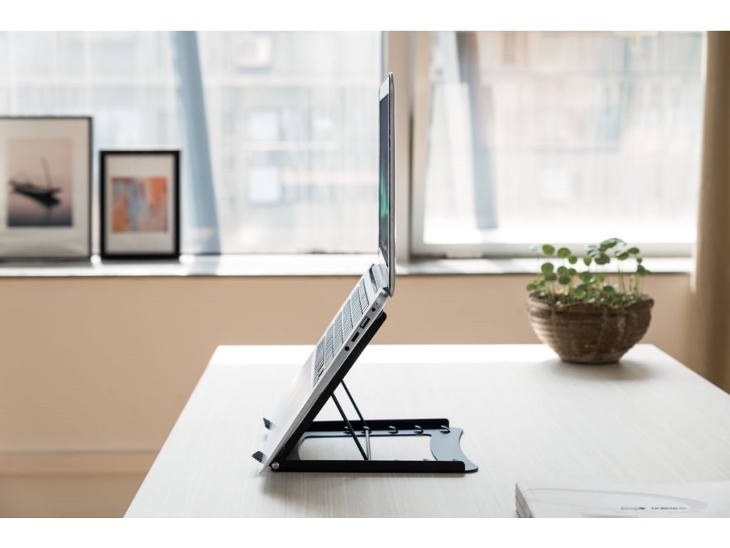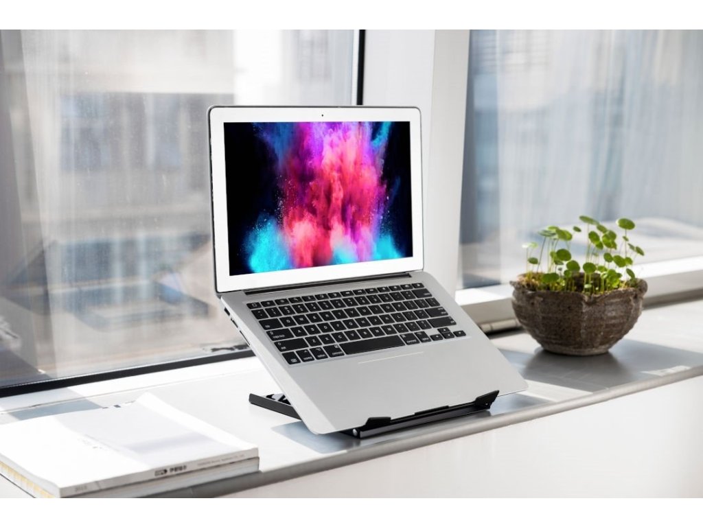 Uniwersalny stojak na laptop, idealny do biura, gabinetu, studia nagrań lub występów na żywo. Stojak wykonany jest z bardzo wytrzymałej stali i posiada pięć ustawień kąta nachylenia od 15 do 20 stopni. LR1 jest w pełni kompatybilny z laptopami do 15 cali, a dzięki składanej konstrukcji zmieści się w torbie transportowej na Twoje urządzenie, dzięki czemu możesz go mieć zawsze przy sobie.
