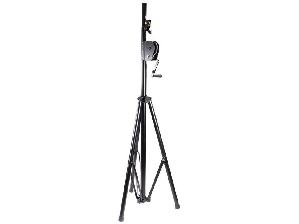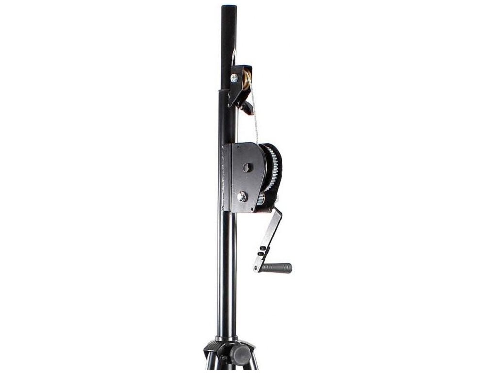 Stand4Me LS3000 to wysokiej jakości statyw oświetleniowy z korbą i klasyczną wciągarką linową. Stojak sprawdza się zarówno jako podpora poprzeczek i kratownic używanych do montażu urządzeń oświetleniowych i scenicznych, jak i masywny statyw pod ciężkie głośniki. Średnica górnej rury wynosi 35 mm, dzięki czemu można go używać z adapterem WIND UP KIT do konstrukcji scenicznych lub z dowolnym adapterem głośnikowym. Statyw LS3000 jest wyposażony w kołki zabezpieczające, które zapobiegają nieoczekiwanemu opuszczeniu, ze względów bezpieczeństwa. Dodatkową zaletą jest rozkładanie i składanie statywu, które trwa dosłownie kilka sekund, co jest bardzo ważne w przypadku instalacji mobilnych.