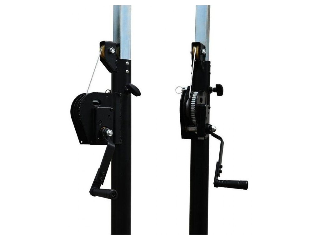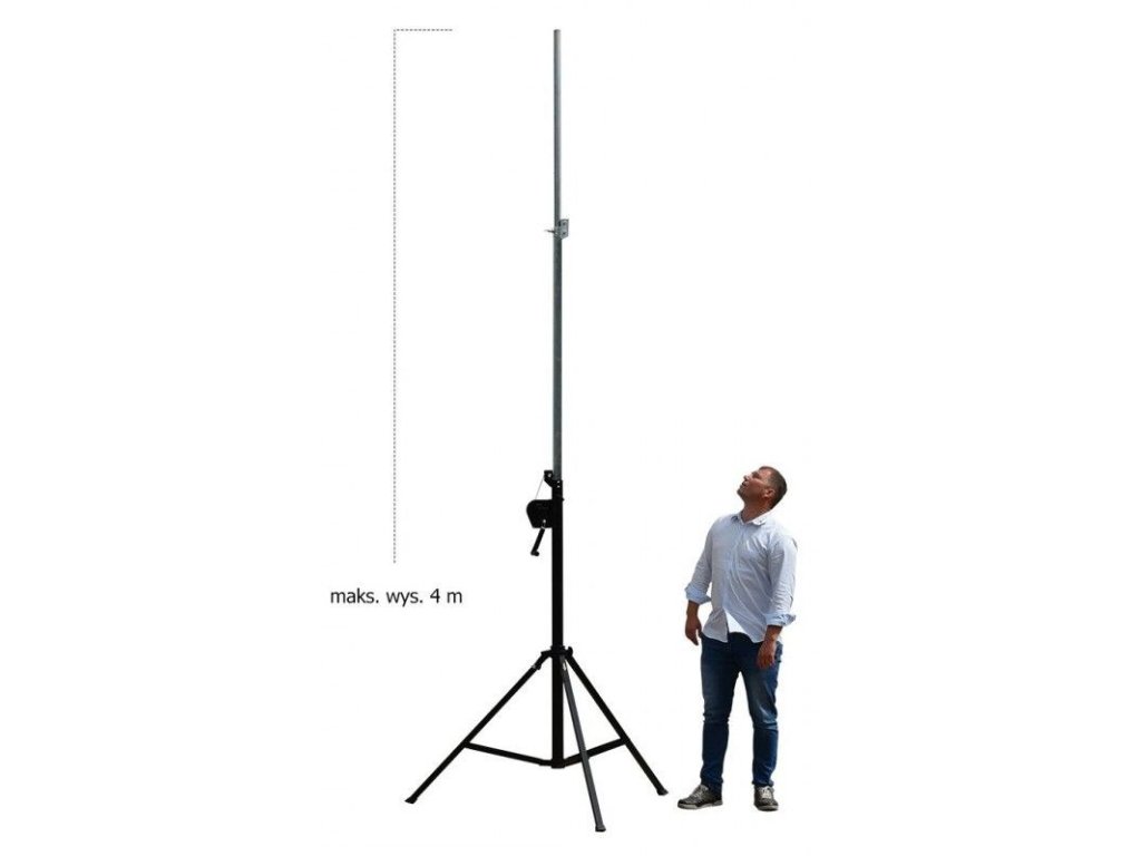 Stand4Me LS4300 to wysokiej jakości statyw oświetleniowy z korbą i klasycznym zwijaczem kablowym. Statyw dobrze posłuży zarówno do podpierania konstrukcji kratownicowych do montażu oświetlenia i techniki scenicznej, jak i jako masywny statyw pod ciężkie głośniki. Średnica górnej rury wynosi 35 mm, dzięki czemu pasuje zarówno do adaptera Stand4Me WIND-UP KIT do montażu aluminiowych konstrukcji scenicznych, jak i do dowolnego adaptera głośnikowego. Dla zapewnienia bezpieczeństwa statyw LS4300 wyposażony jest w kołki bezpieczeństwa, które zapobiegają nieprzewidzianemu uruchomieniu. Dodatkową zaletą jest rozkładanie i składanie statywu, które trwa dosłownie kilkadziesiąt sekund, co jest bardzo ważne przy mobilnych instalacjach.