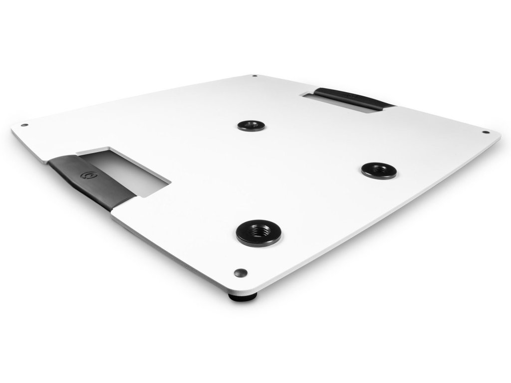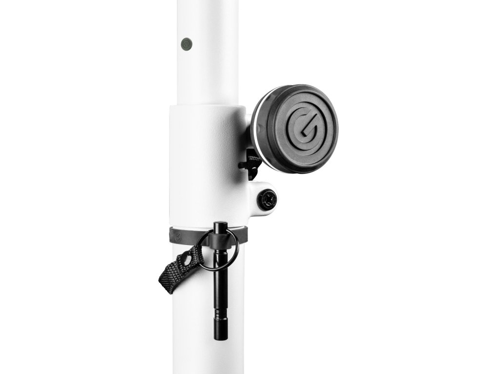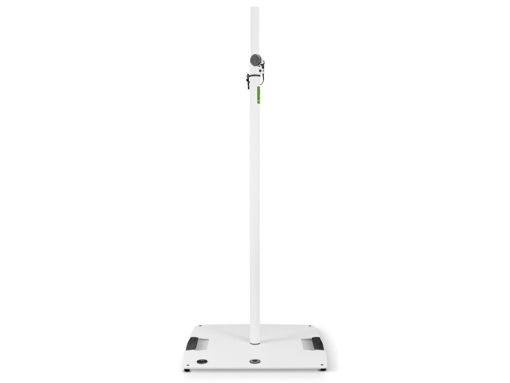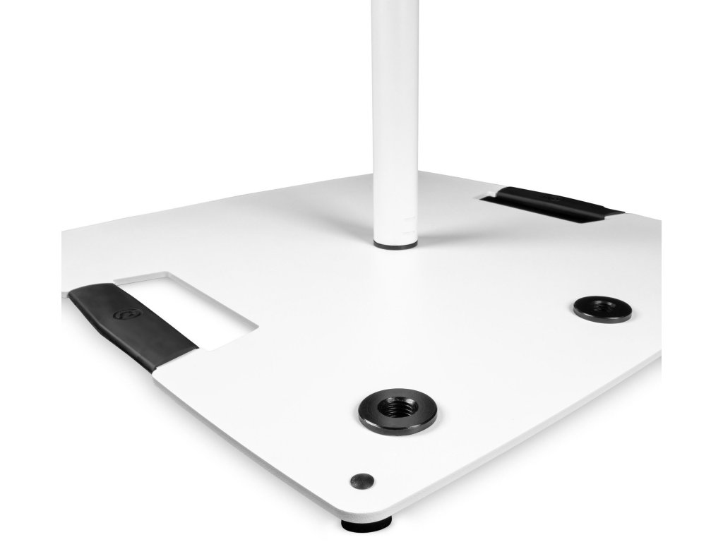Statyw oświetleniowy GLS 431 B jest wyposażony w dużą, ciężką stalową podstawę zapewniającą solidną bazę oraz trzy wewnętrzne gwinty M20, które umożliwiają zamontowanie dodatkowego obciążenia poza środkiem. Przedłużka 35 mm z gwintem wewnętrznym M10 pozwala na uzyskanie maksymalnej wysokości 2,4 m. Dwa zintegrowane uchwyty podstawy ułatwiają transport.