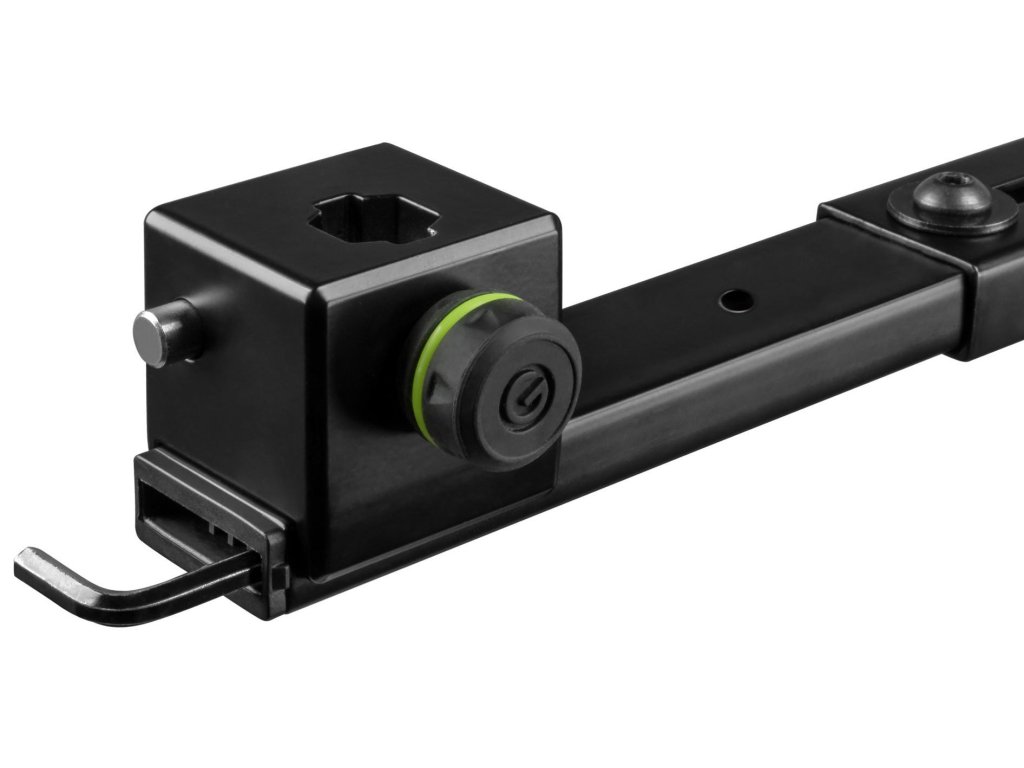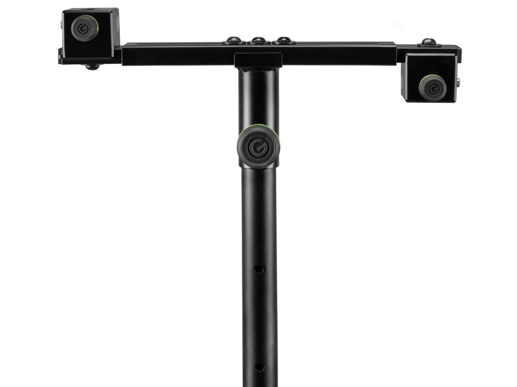 Kompaktowy uchwyt T do statywów o średnicy rury 35 mm firmy Gravity. Umożliwia dyskretne umieszczenie 2 efektów świetlnych bez wygórowanych wymagań przestrzennych. Uchwyt o eleganckim wyglądzie jest wyposażony w konstrukcję z regulacją szerokości 390 - 570 mm. Zawiera mocowanie TV 17 mm ułatwiające umieszczenie świateł bez konieczności użycia śrub i nakrętek motylkowych. Elastyczna konstrukcja umożliwia przymocowanie świateł w pozycji pionowej lub ich zawieszenie. Pomimo kompaktowych rozmiarów, oferuje nośność 20 kg na każdym ramieniu. Rozstaw czopów wynosi od 330 do 515 mm. W razie potrzeby umieszczenia więcej niż 2 opraw, możliwa jest instalacja dodatkowych uchwytów. Wysokiej jakości uchwyt jest dostarczany wraz z ergonomicznymi śrubami zabezpieczającymi, wymiennymi kolorowymi pierścieniami i uchwytem na klucze montażowe.